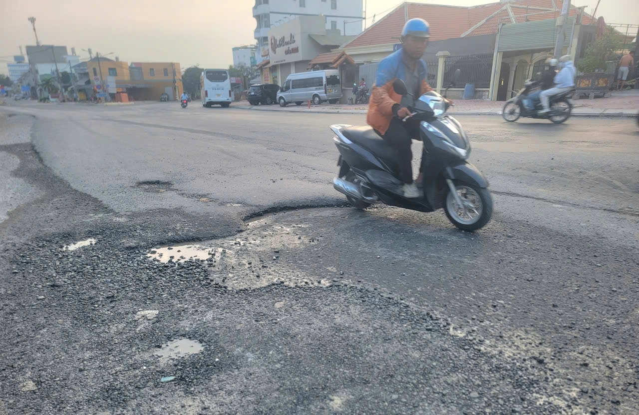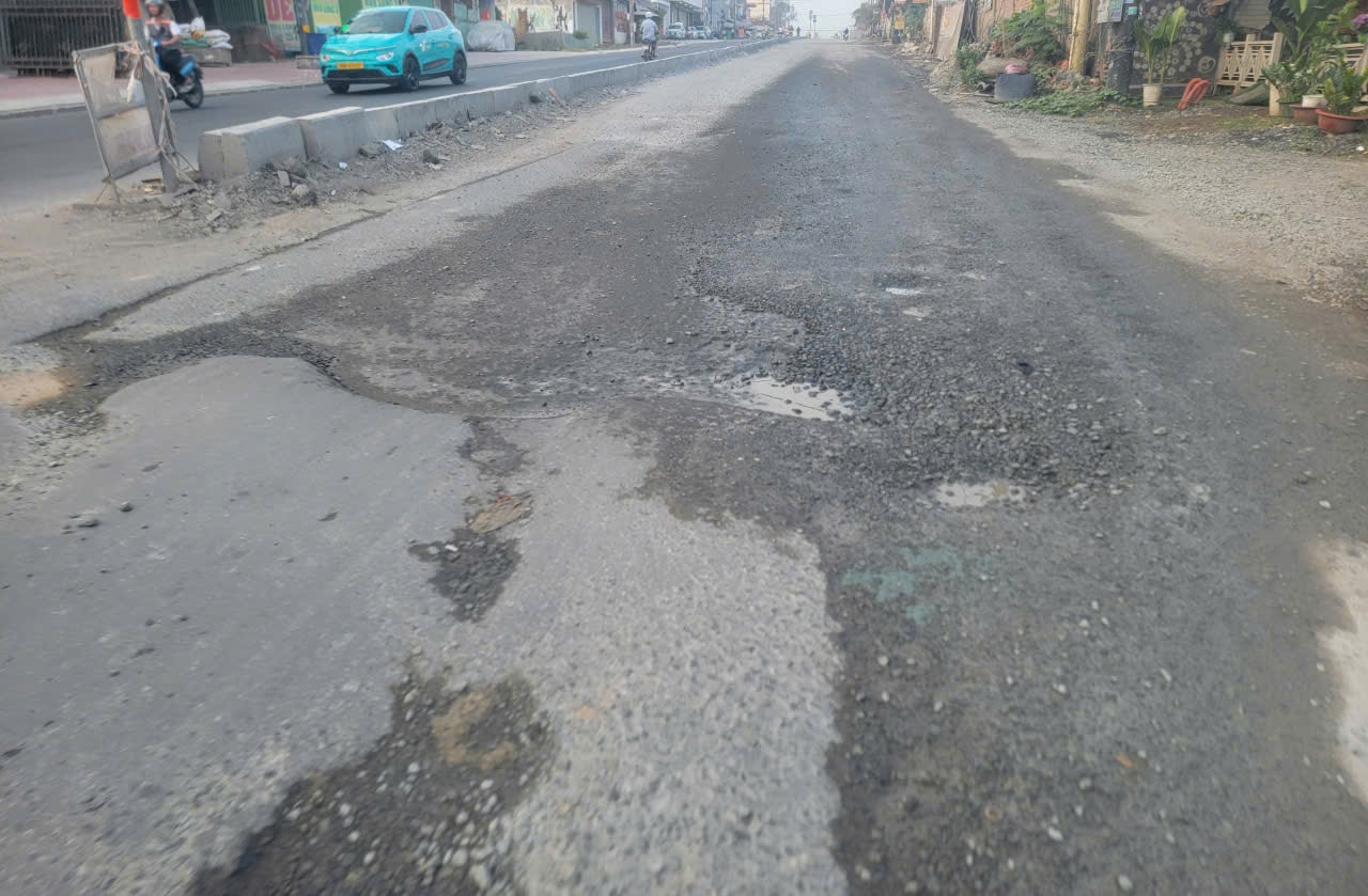 Mặt đường nhiều khu vực bị hư hỏng gây mất an toàn giao thông. Ảnh: Quang Phương