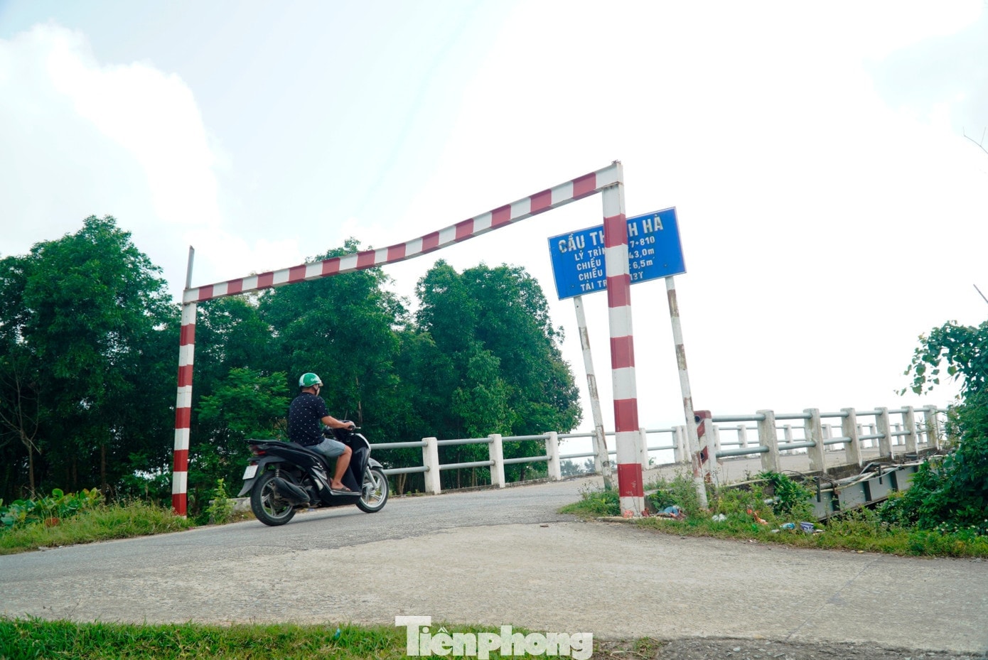 Cầu Thanh Hà cũ được xây dựng từ năm 1992, khổ cầu chỉ rộng 6,5m và hiện bị giới hạn tải trọng 5 tấn. Ảnh: Ngọc Văn (Báo Tiền Phong)