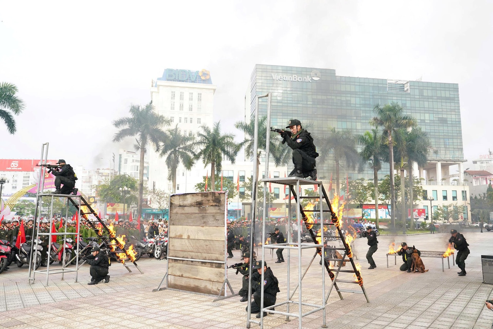 Tại buổi lễ, lực lượng Cảnh sát cơ động trình diễn kỹ, chiến thuật tiếp cận mục tiêu, thể hiện bản lĩnh, khả năng phản ứng nhanh, tạo khí thế quyết tâm cho toàn lực lượng. Sau lễ ra quân, các lực lượng Công an, Quân đội, Biên phòng, Hải quan, Tòa án, Viện kiểm sát, Kiểm lâm, đoàn thể và lực lượng cơ sở đã diễu hành qua các tuyến phố trung tâm.