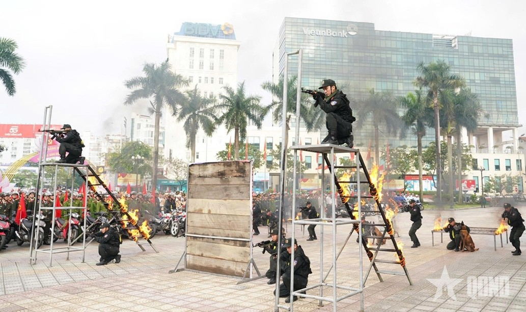 Tại buổi lễ ra quân, Phòng Cảnh sát cơ động Công an TP Huế đã trình diễn kỹ, chiến thuật vận động tiếp cận mục tiêu, thể hiện bản lĩnh, sức chiến đấu và khả năng phản ứng nhanh của lực lượng. Màn trình diễn không chỉ khẳng định trình độ, sự chuyên nghiệp của lực lượng mà còn tạo khí thế quyết tâm cao cho toàn lực lượng Công an trong đợt cao điểm tấn công, trấn áp tội phạm. Đây cũng là thông điệp mạnh mẽ về sự sẵn sàng bảo vệ an ninh, trật tự của thành phố.