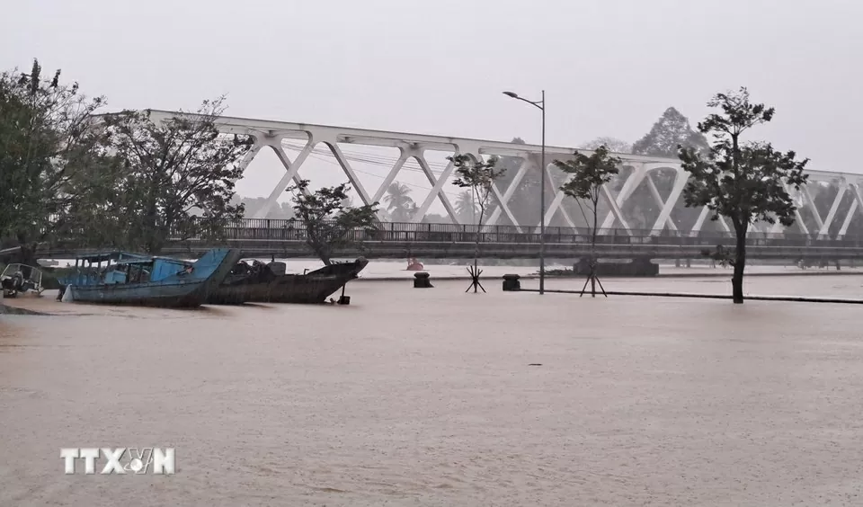 Bờ Nam sông Hương, phường Thuận Hóa, TP. Huế ngập sáng 27/10.