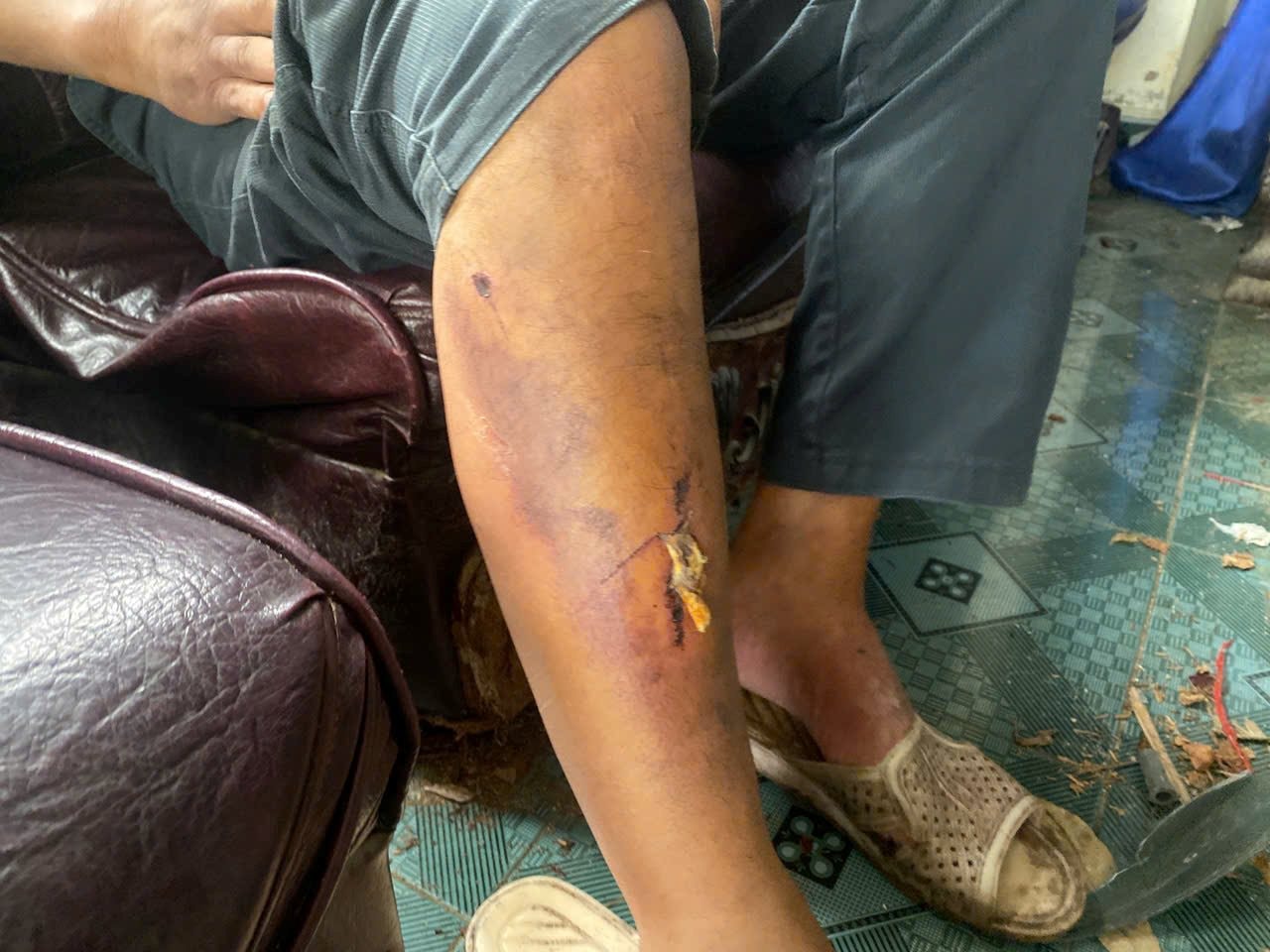 Cẳng chân bị thương và sưng tấy làm việc đi lại của ông H. gặp khó khăn.