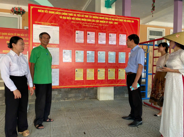 Công an phường Kim Long phối hợp với các đơn vị kiểm tra, quyết tâm đảm bảo an ninh an toàn tại các điểm bầu cử.