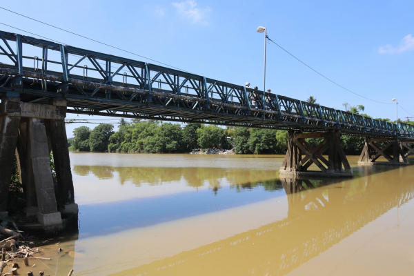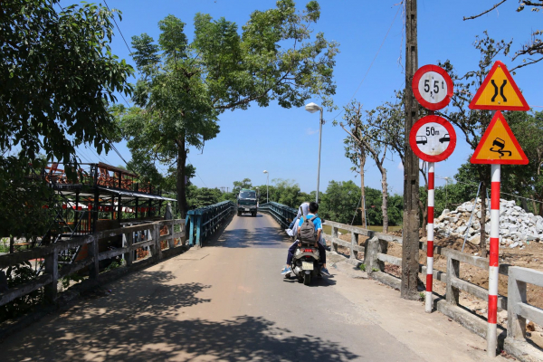 Cầu Phú Lưu bắc qua sông Hương dẫn vào Cồn Hến đang xuống cấp nghiêm trọng.