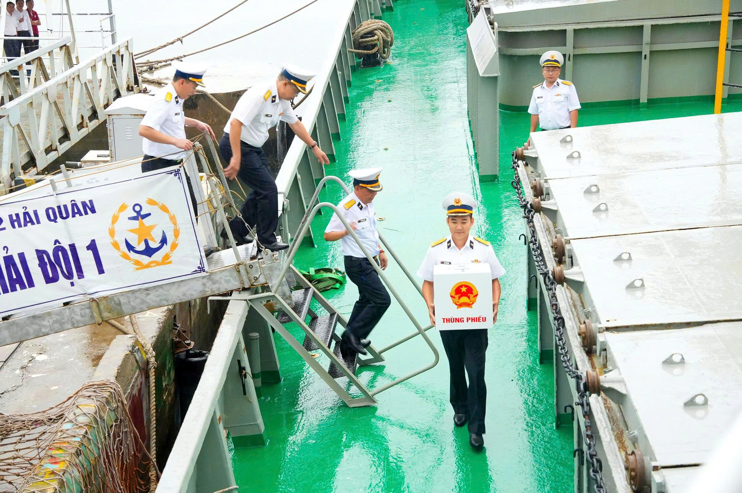 Tàu Trường Sa 21 đem theo thùng phiếu phụ phục vụ cử tri làm nhiệm vụ trên biển bỏ phiếu bầu