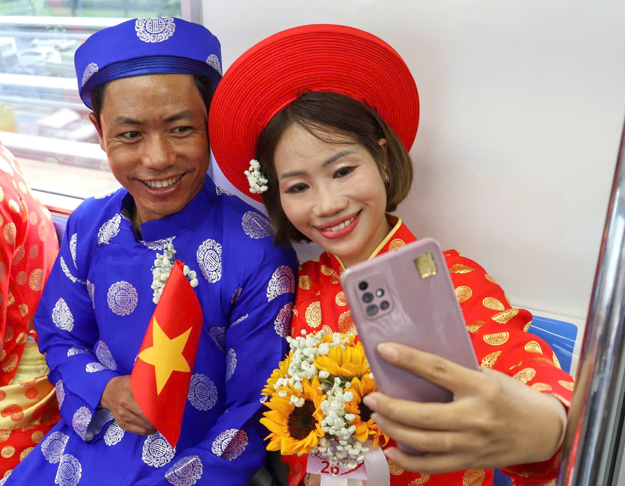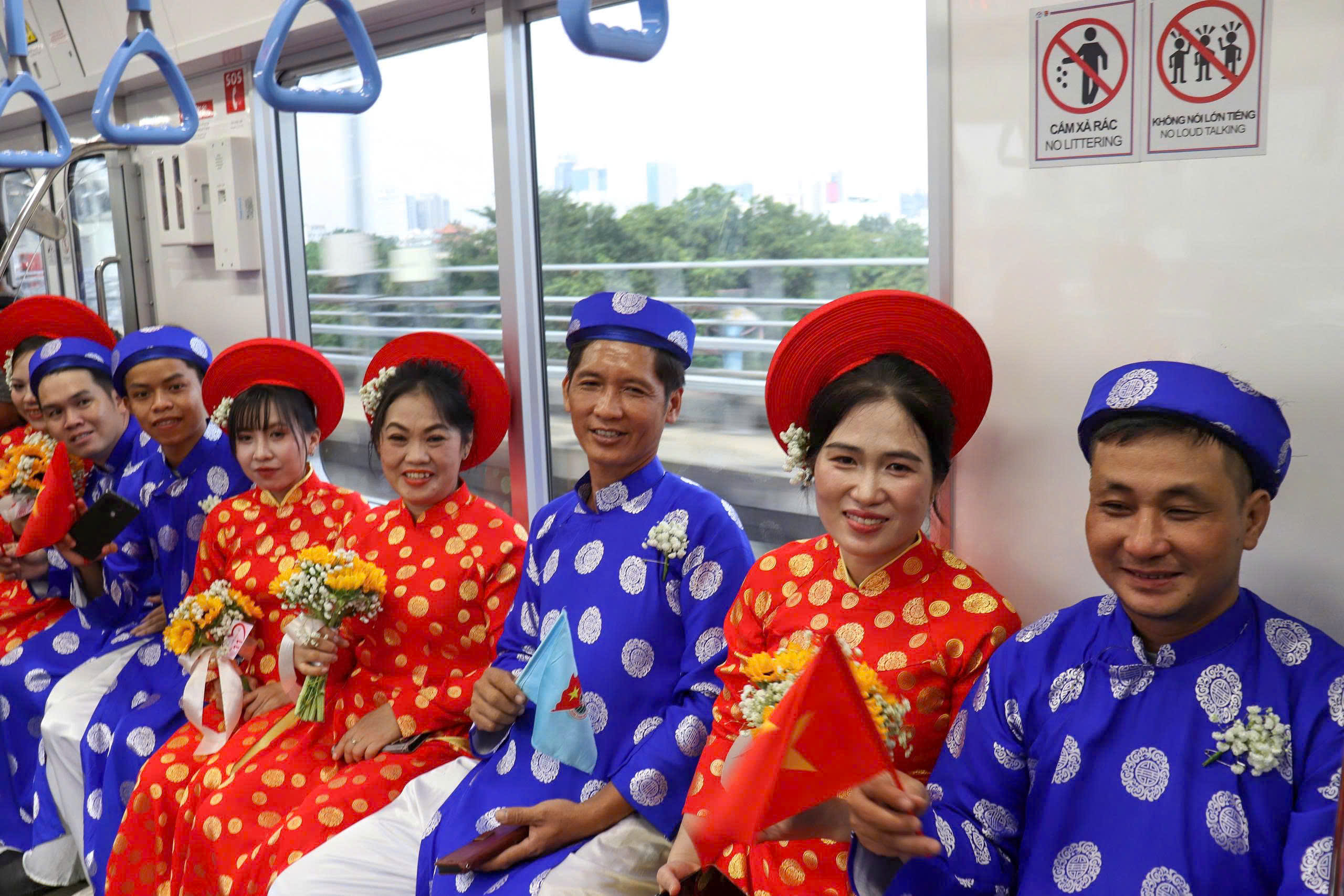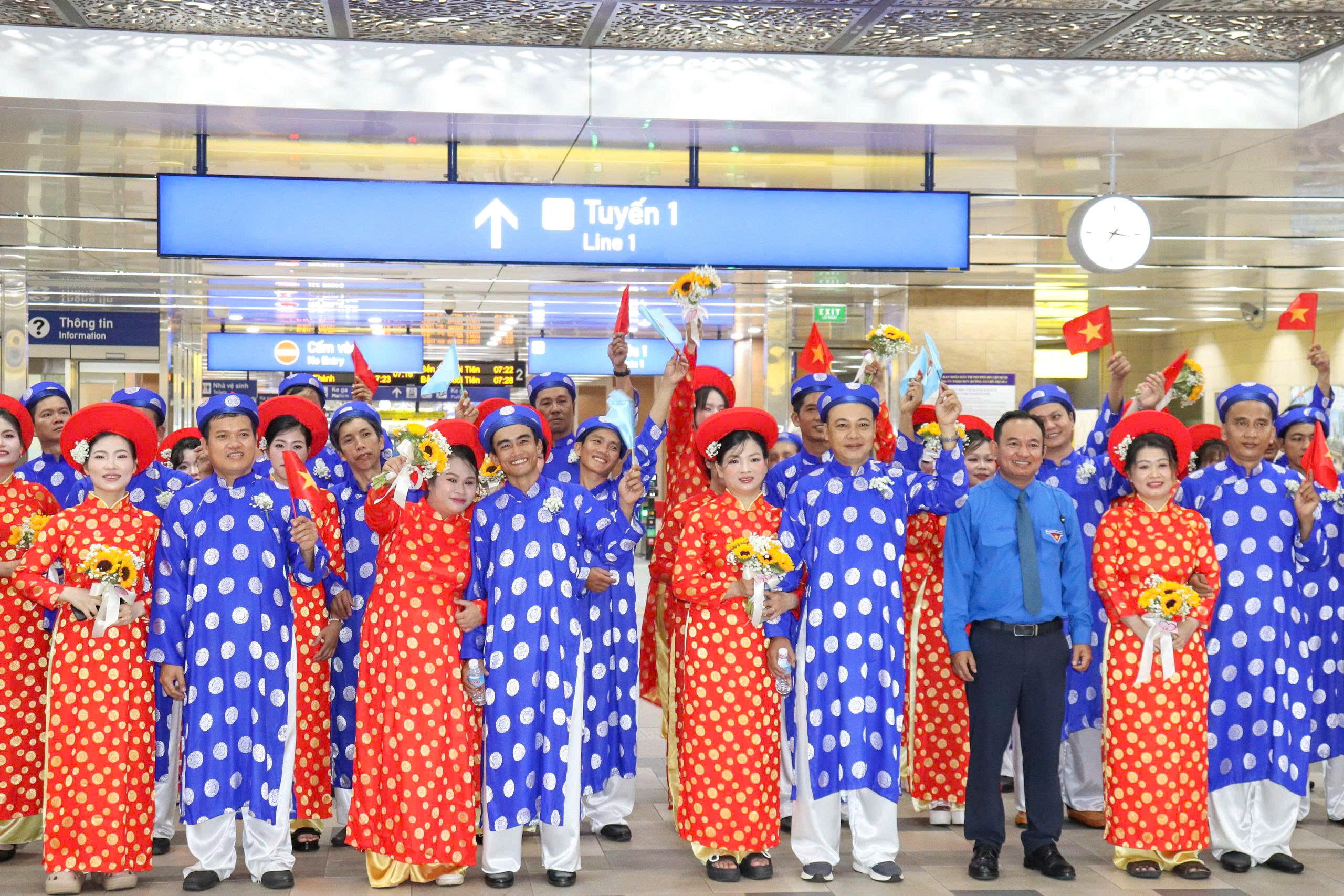 Cô dâu, chú rể di chuyển bằng Metro số 1 đến trung tâm tổ chức tiệc cưới
