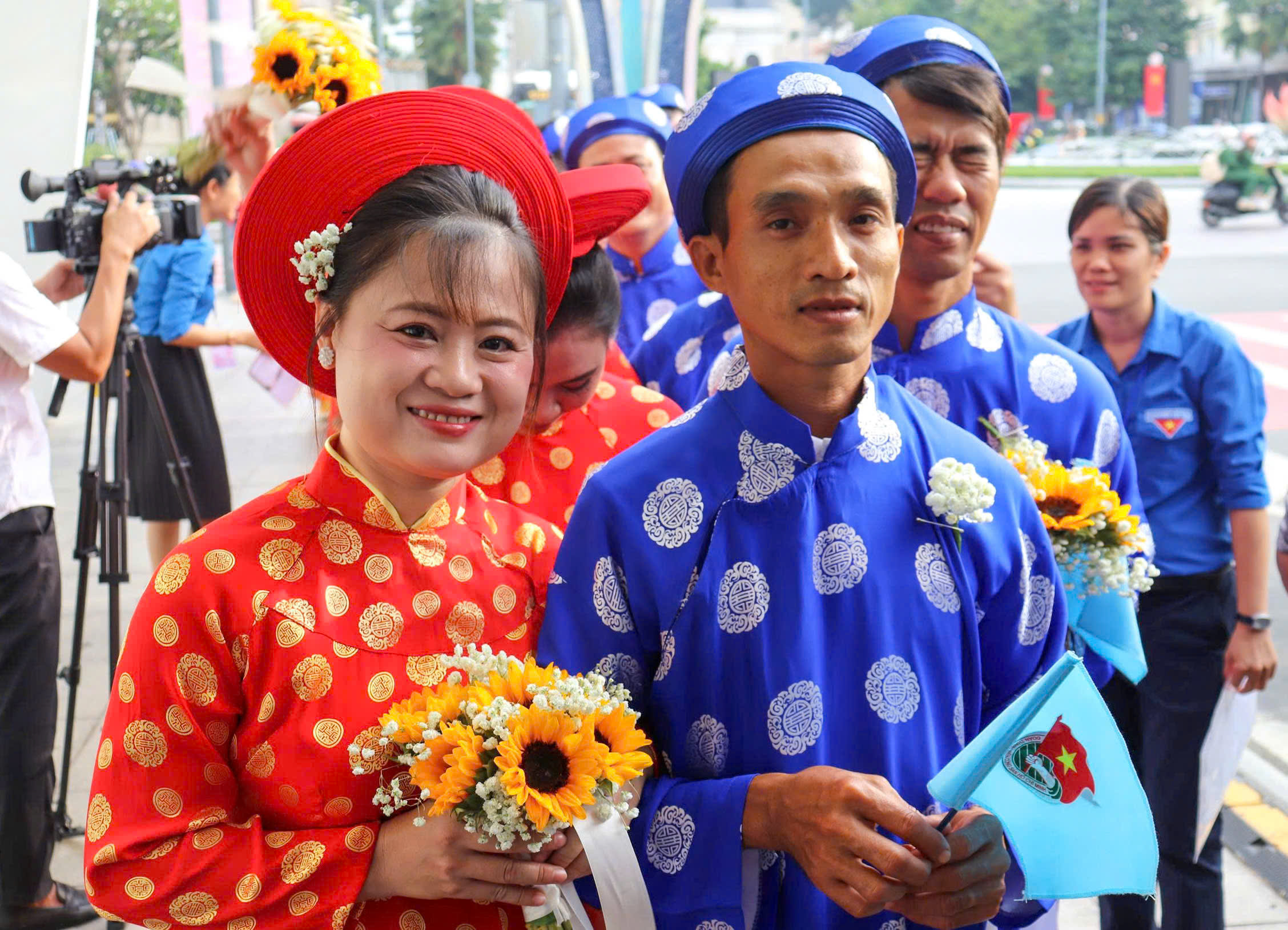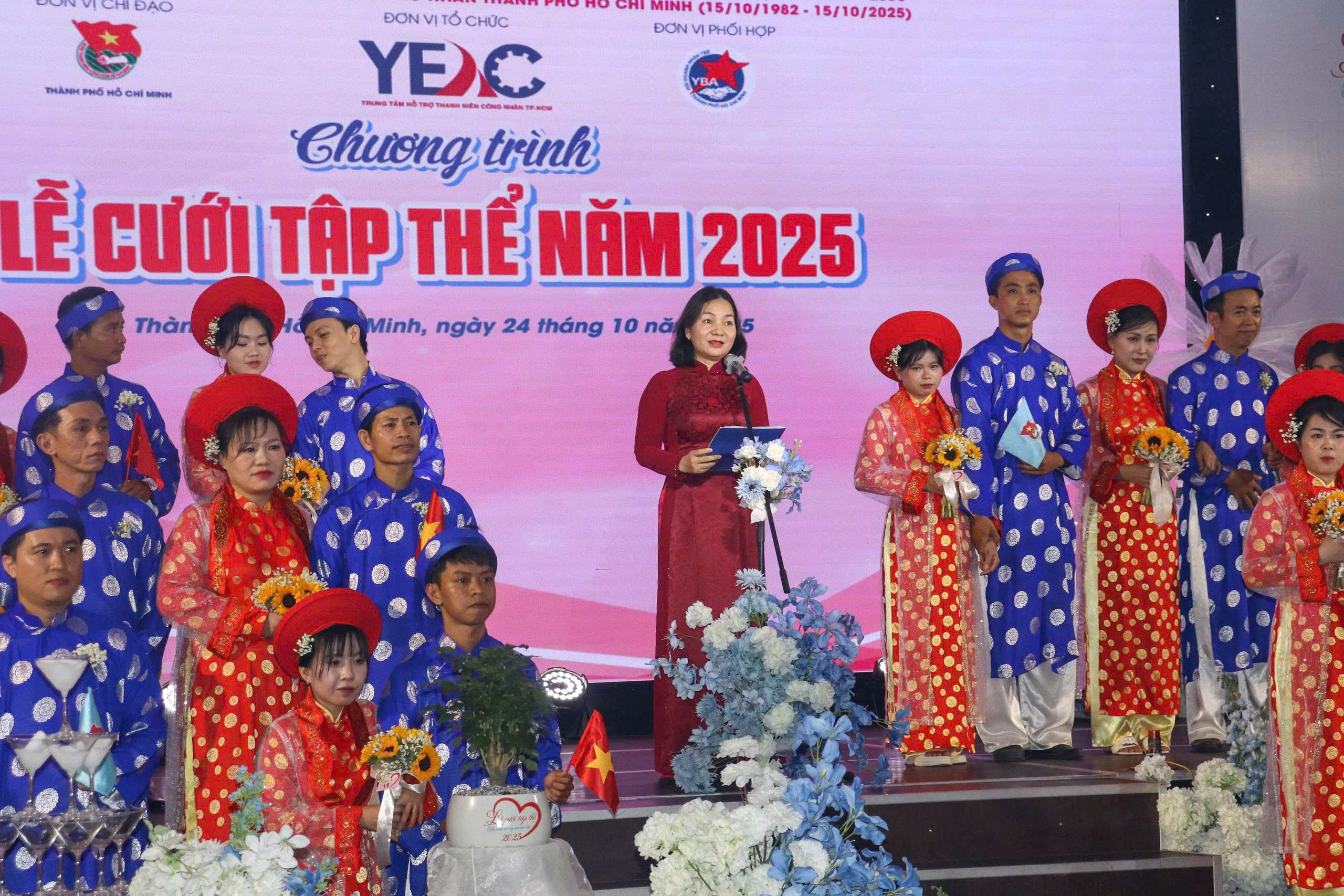 Năm 2025 đánh dấu lần thứ 15 chương trình Lễ cưới tập thể do Thành Đoàn TPHCM, Trung tâm Hỗ trợ Thanh niên công nhân TPHCM phối hợp các đơn vị tổ chức. 50 cặp đôi tham gia chương trình năm nay là cán bộ công nhân viên, giáo viên, bộ đội xuất ngũ, thanh niên công nhân, người lao động có hoàn cảnh khó khăn đang làm việc tại khu công nghiệp, khu chế xuất, cơ quan, đơn vị, trường học, doanh nghiệp hoặc trong các nghiệp đoàn tại TPHCM. Đây là những cặp đôi đã đăng ký kết hôn nhưng chưa có điều kiện tổ chức đám cưới.