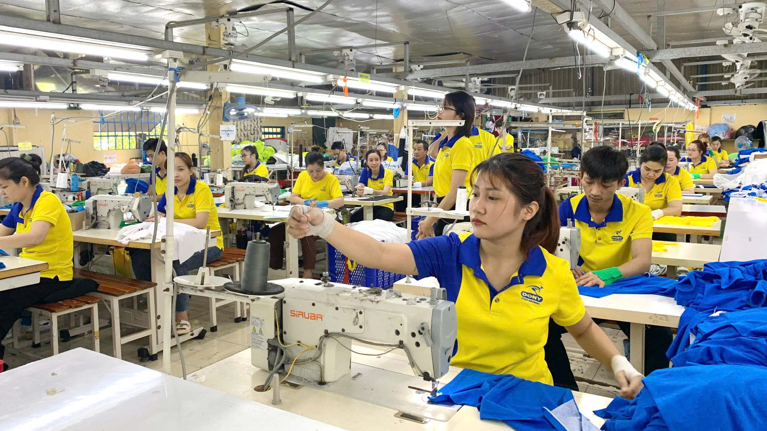 Công nhân Công ty May mặc Dony xã Vĩnh Lộc, TPHCM trong giờ làm việc