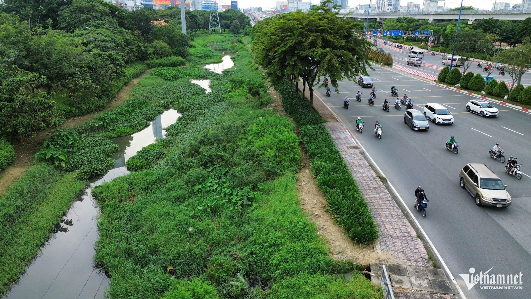 Con rạch phủ kín cỏ dại, lục bình tạo thành 'điểm nghẽn' khiến việc lưu thoát nước bị ảnh hưởng. Do đó, tuyến đường Song Hành và Võ Nguyên Giáp đoạn qua khu vực thường xuyên bị ngập úng mỗi khi mưa lớn, ảnh hưởng đến sinh hoạt, việc đi lại của người dân.