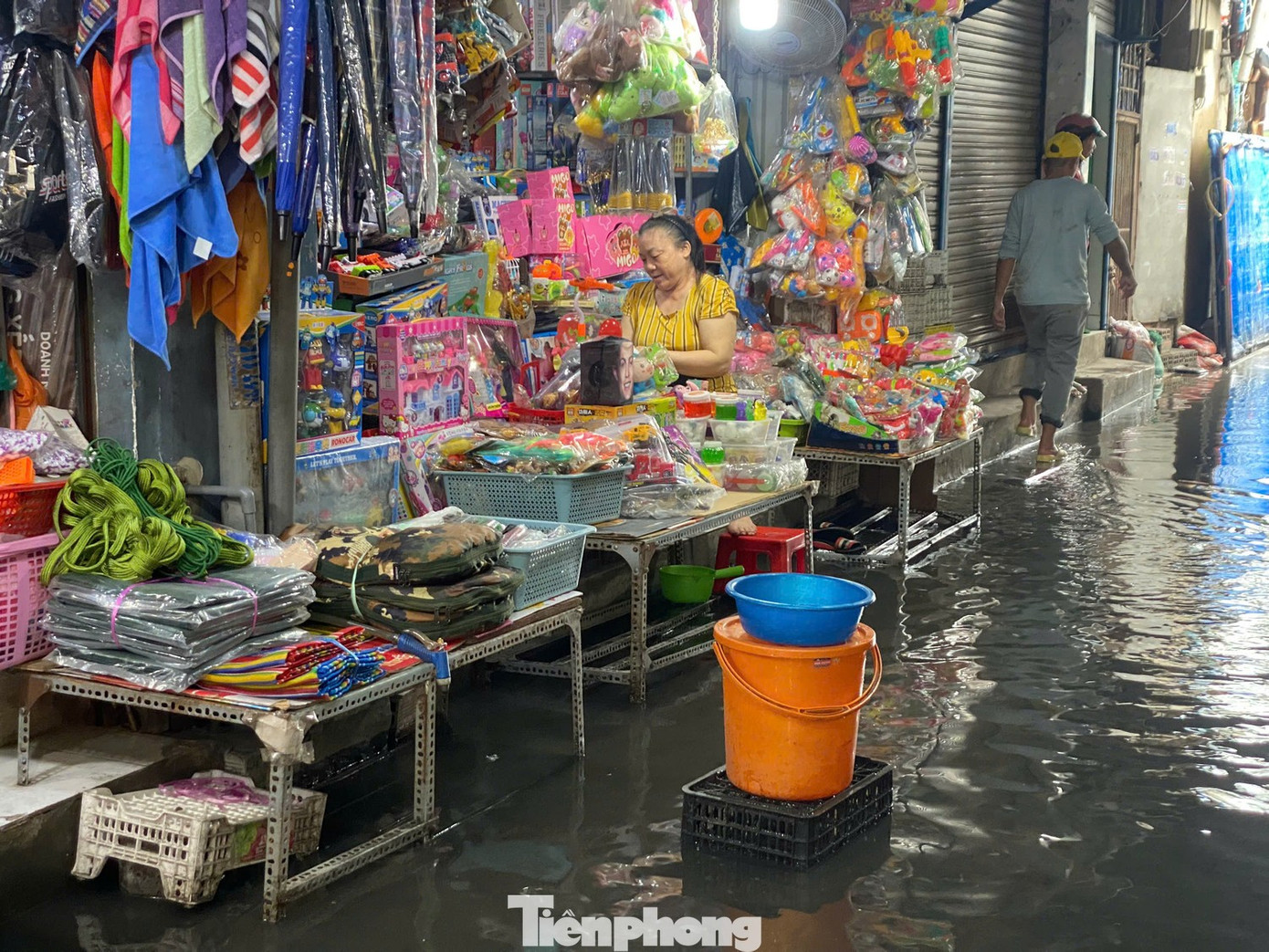 Đường Hồ Học Lãm nâng cao hết ngập, nước lại tràn vào chợ khu phố 2 (phường An Lạc, TPHCM). Ảnh tư liệu: Hữu Huy