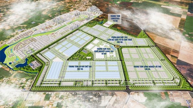 Khu công nghiệp có tổng vốn đầu tư hơn 75.000 tỷ đồng (tương đương 3 tỷ USD), từng dự kiến khởi công tháng 8 năm nay nhưng đến nay vẫn chưa khởi công và đưa vào vận hành giai đoạn đầu từ tháng 9/2026.