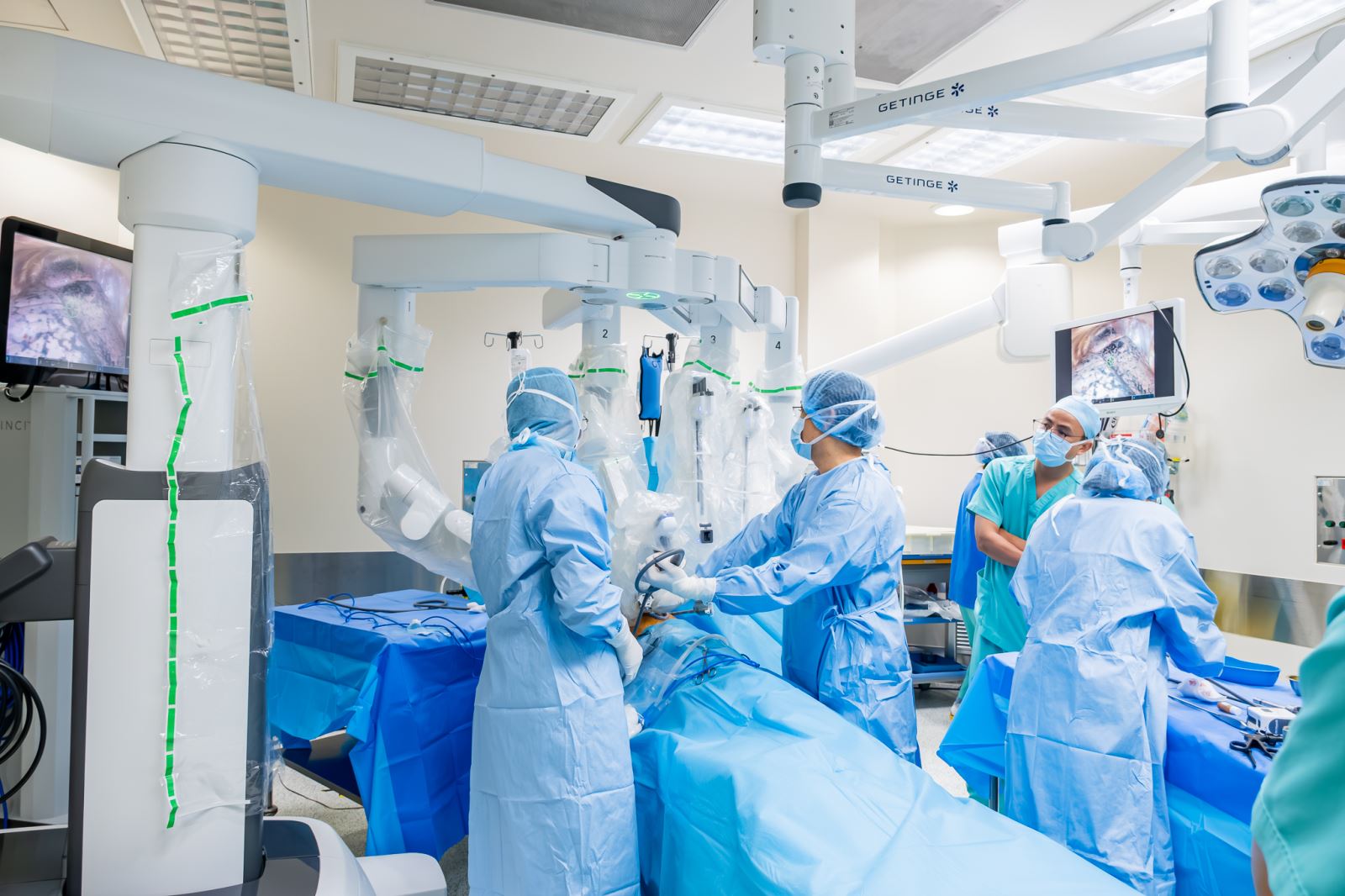 Đội ngũ y bác sĩ của Bệnh viện FV thực hiện một ca mổ ung thư phổi bằng robot da Vinci Xi. Ảnh: BVCC