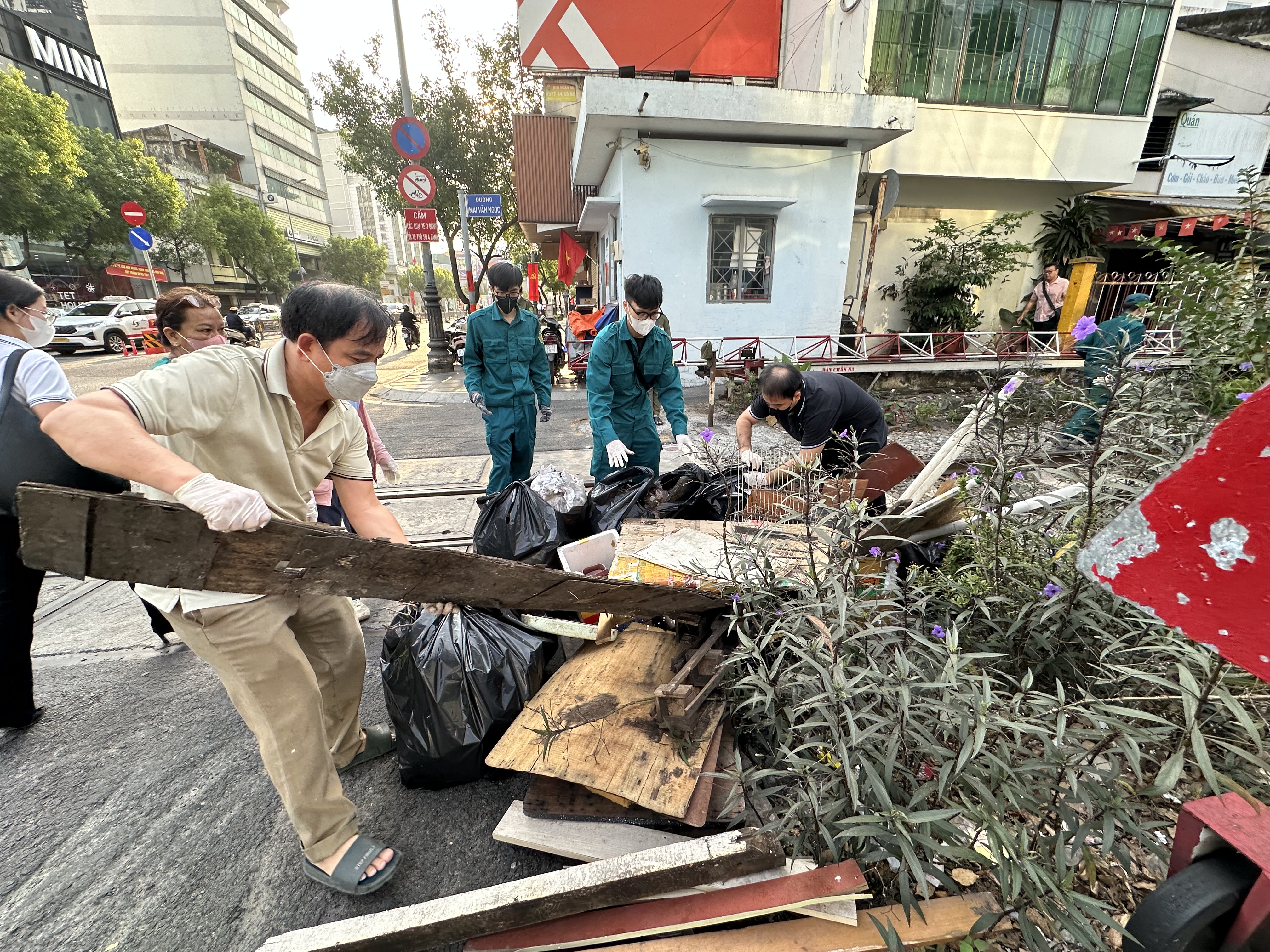 Cán bộ phường Phú Nhuận, TPHCM dọn rác thải. Ảnh: THANH HIỀN