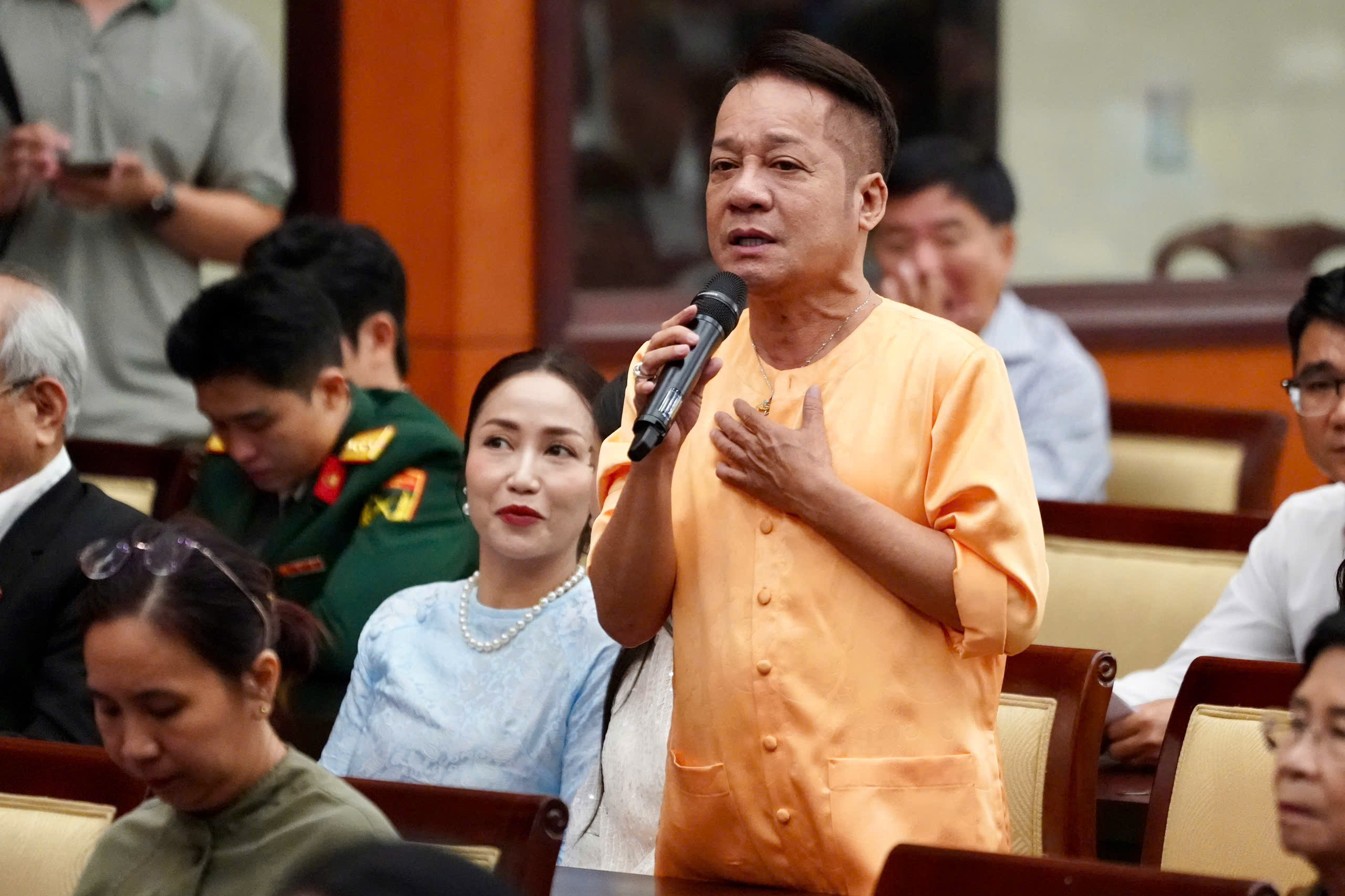 Một nữ nghệ sĩ nhắc lại câu chuyện dự án xây dựng Nhà hát Giao hưởng, nhạc và vũ kịch, cho rằng đây là công trình có ý nghĩa, tầm vóc quốc gia nhưng đến nay vẫn chậm tiến độ. Từ thực tế đó, nghệ sĩ kiến nghị TPHCM sớm có những giải pháp cụ thể về phát triển giáo dục nghệ thuật, trong đó hướng tới mục tiêu để mỗi học sinh khi tốt nghiệp phổ thông đều có thể chơi được ít nhất một loại nhạc cụ.