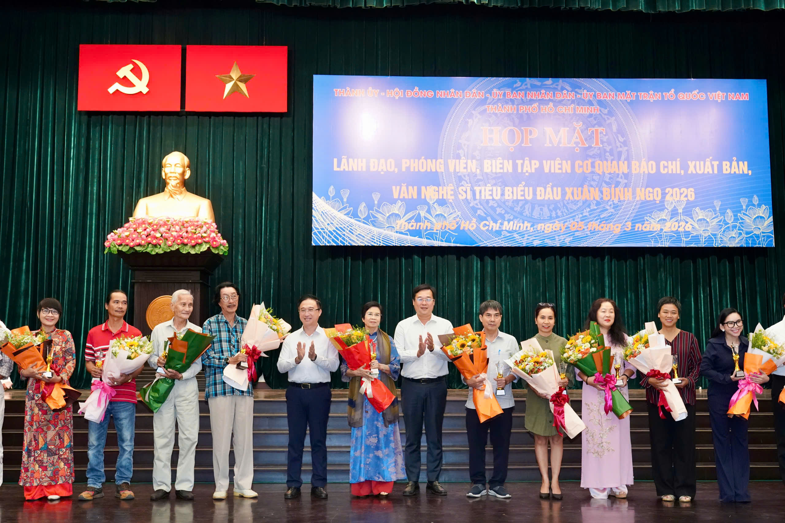 Sáng 5-3, Thành ủy - HĐND - UBND - Ủy ban MTTQ Việt Nam TPHCM tổ chức họp mặt lãnh đạo, phóng viên, biên tập viên cơ quan báo chí, xuất bản, văn nghệ sĩ tiêu biểu nhân dịp đầu năm Bính Ngọ 2026.