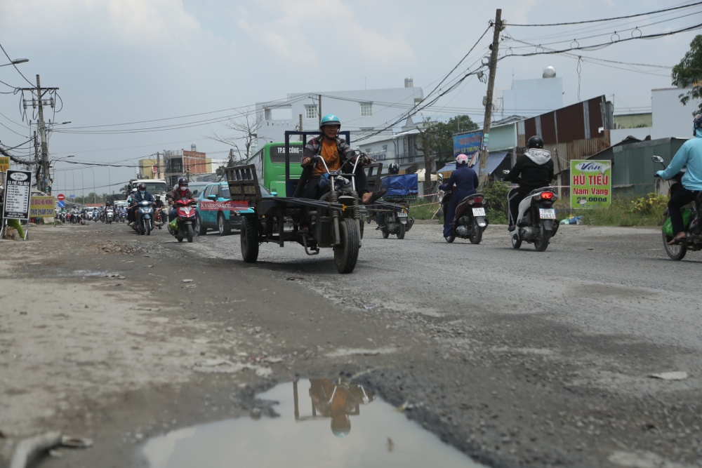 Mật độ phương tiện cao cùng với việc thi công khiến nhiều đoạn trên tuyến đường huyết mạch này xuống cấp, xuất hiện ổ gà, bụi khi nắng và đọng nước khi mưa, gây không ít khó khăn cho người đi lại.