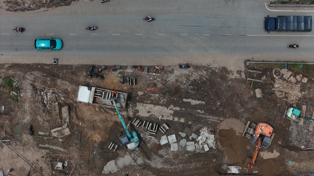 Nhiều đoạn đã hoàn thành việc mở rộng và đang san lấp.