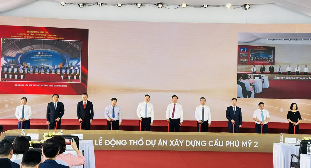 Nghi thức lễ động thổ dự án cầu Phú Mỹ 2. Ảnh: Đình Dư