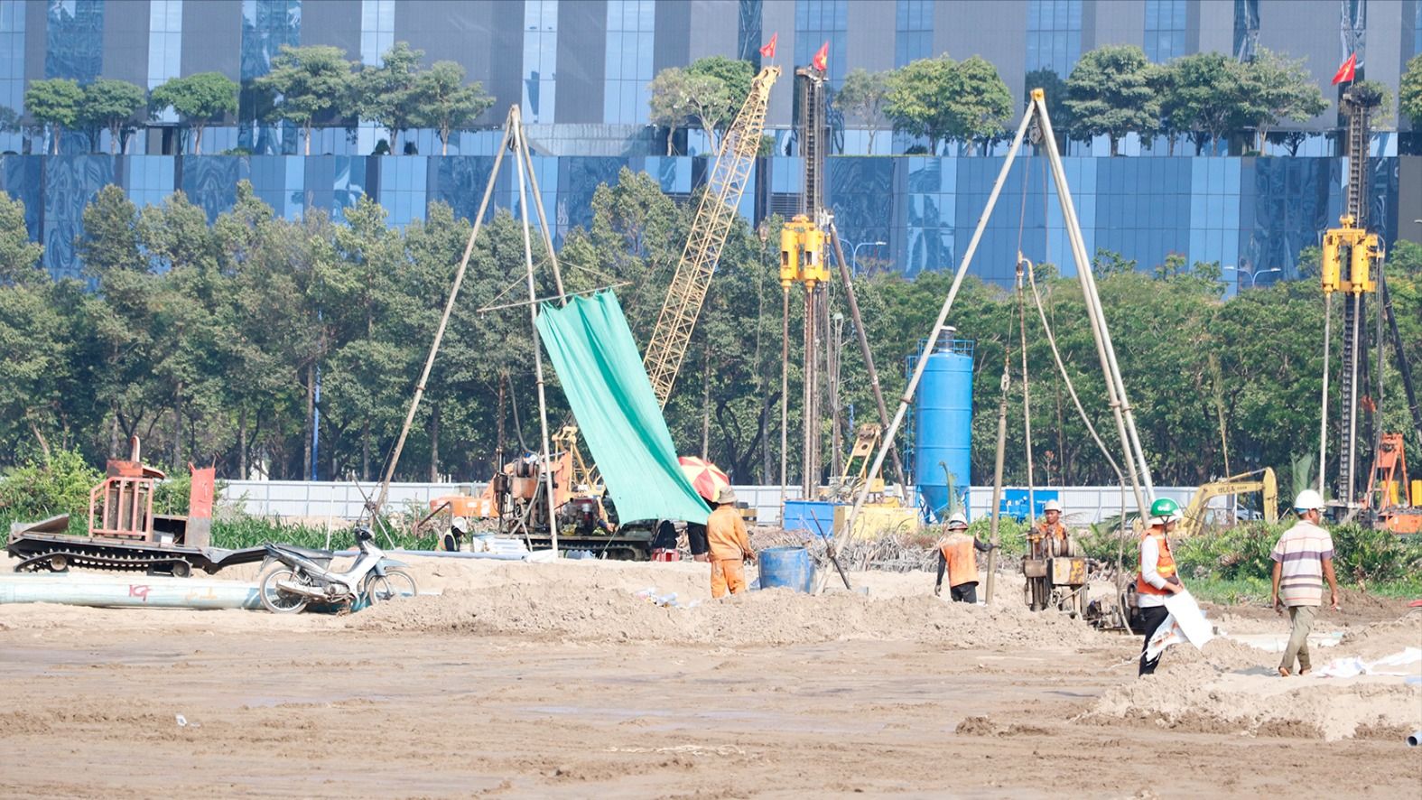Công nhân làm việc trên công trường dự án Quảng trường Trung tâm Thành phố và Trung tâm Hành chính TPHCM. Ảnh: NGÔ BÌNH