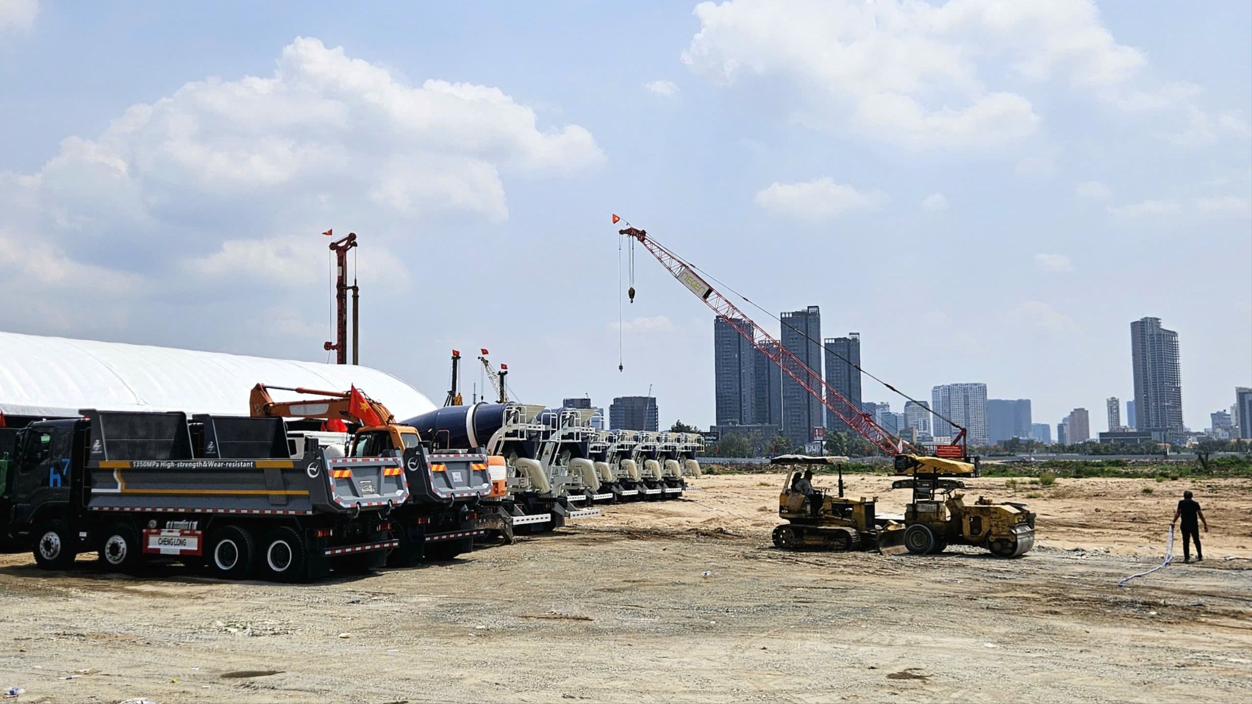 Máy móc được tập kết chuẩn bị thi công dự án Quảng trường Trung tâm Thành phố và Trung tâm Hành chính của TPHCM. ẢNH: NGÔ BÌNH