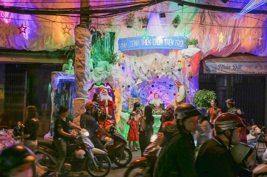 Không khí Giáng sinh ngập tràn khắp phố, phường tại TPHCM. Trong ảnh là xóm đạo Nguyễn Thế Hiển, phường Bình Đông.