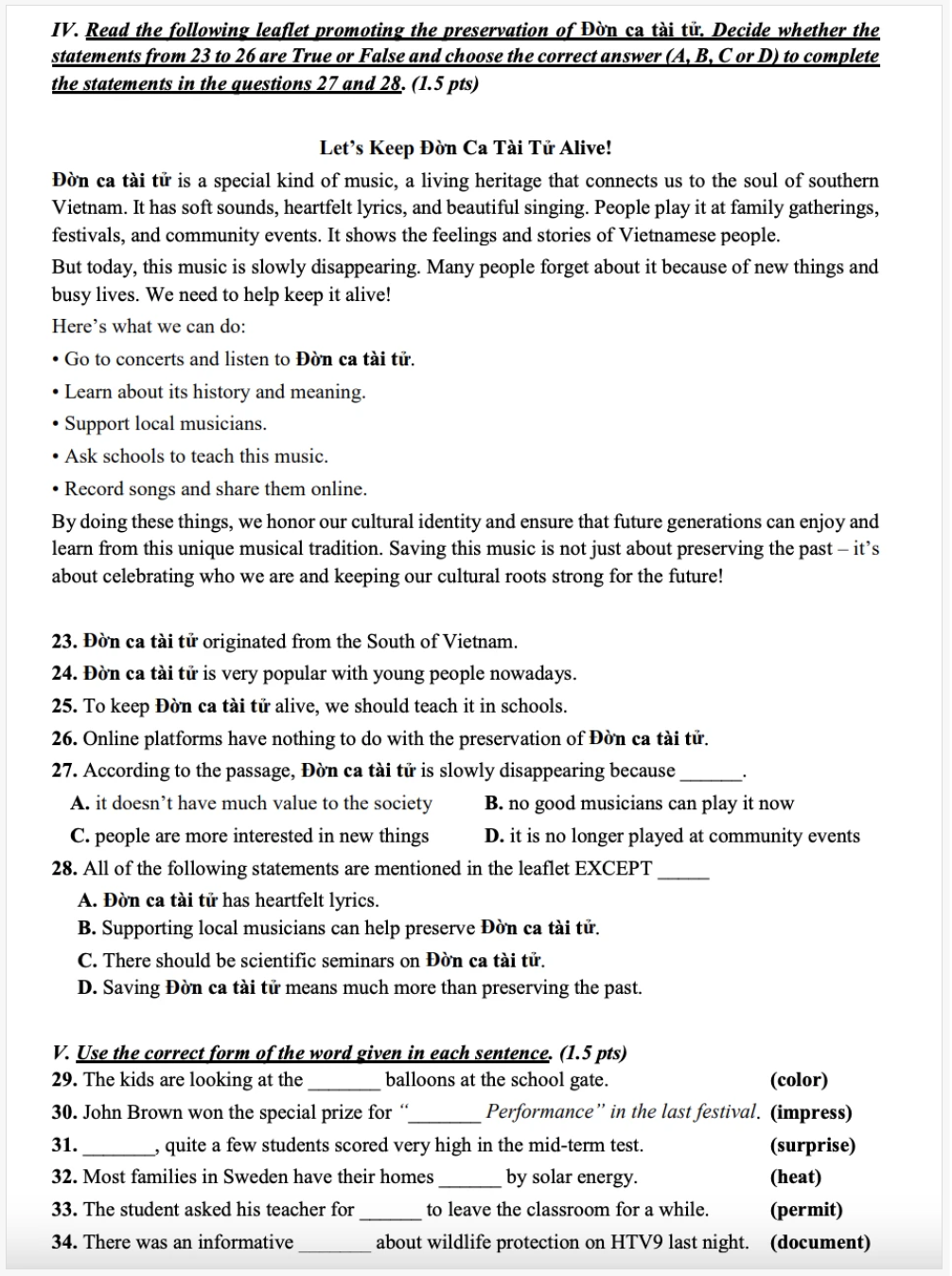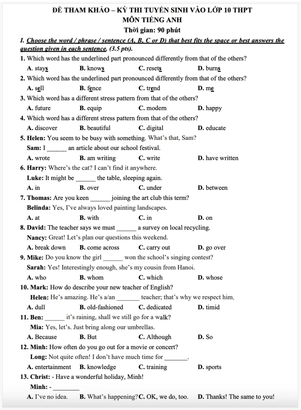 Đề thi tham khảo môn Tiếng Anh. Ảnh chụp màn hình