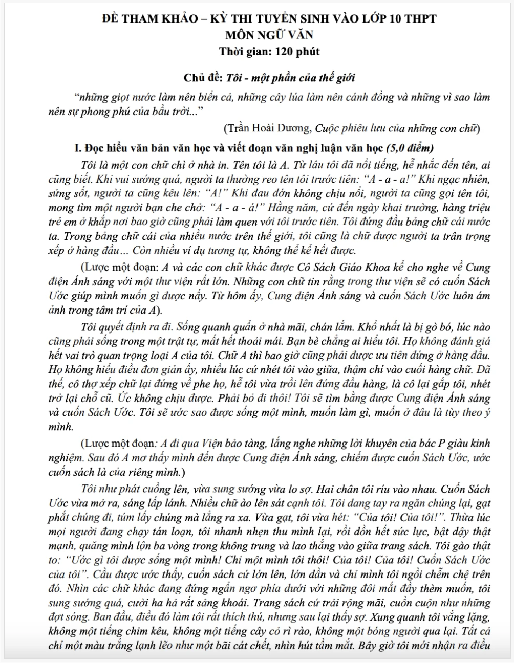 Đề tham khảo môn Ngữ văn. Ảnh chụp màn hình