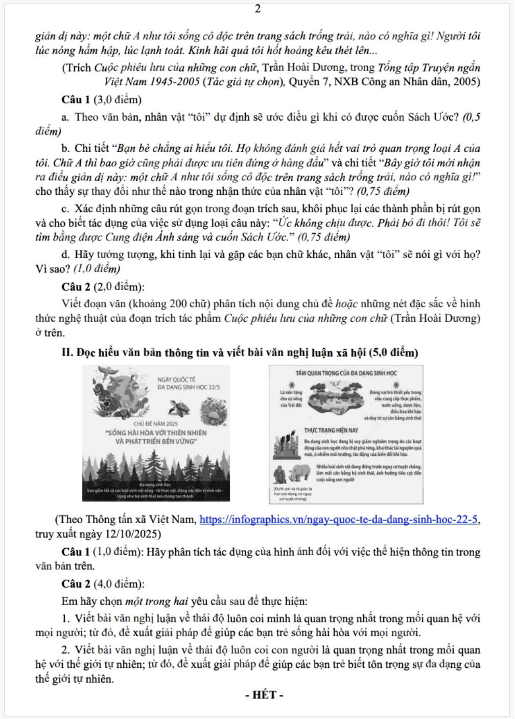 Đề thi được xây dựng theo định hướng tích hợp giữa đánh giá năng lực đọc hiểu và năng lực viết, nội dung trong phần viết có liên quan đến văn bản ở phần đọc hiểu.