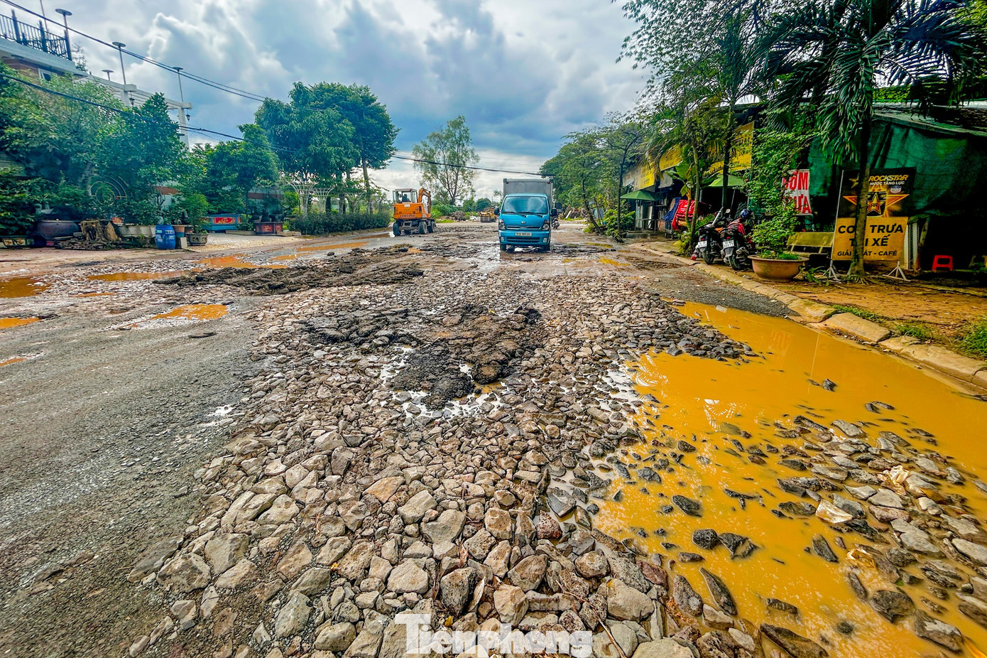 Đường số 10 có nhiều ổ voi gây nguy hiểm cho người đi xe máy.