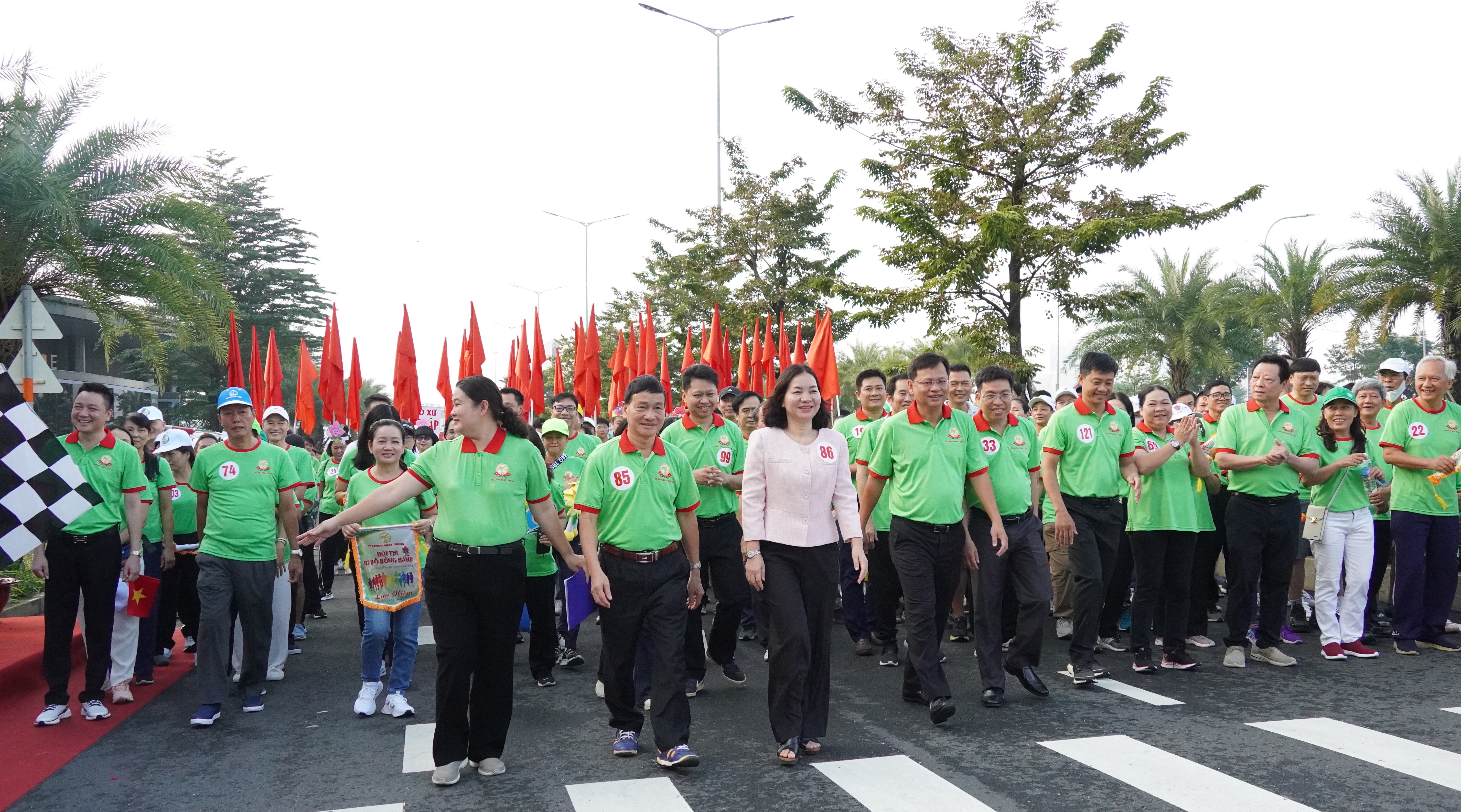 Đồng chí Trương Thị Bích Hạnh tham gia đi bộ đồng hành tại phường Bình Trưng