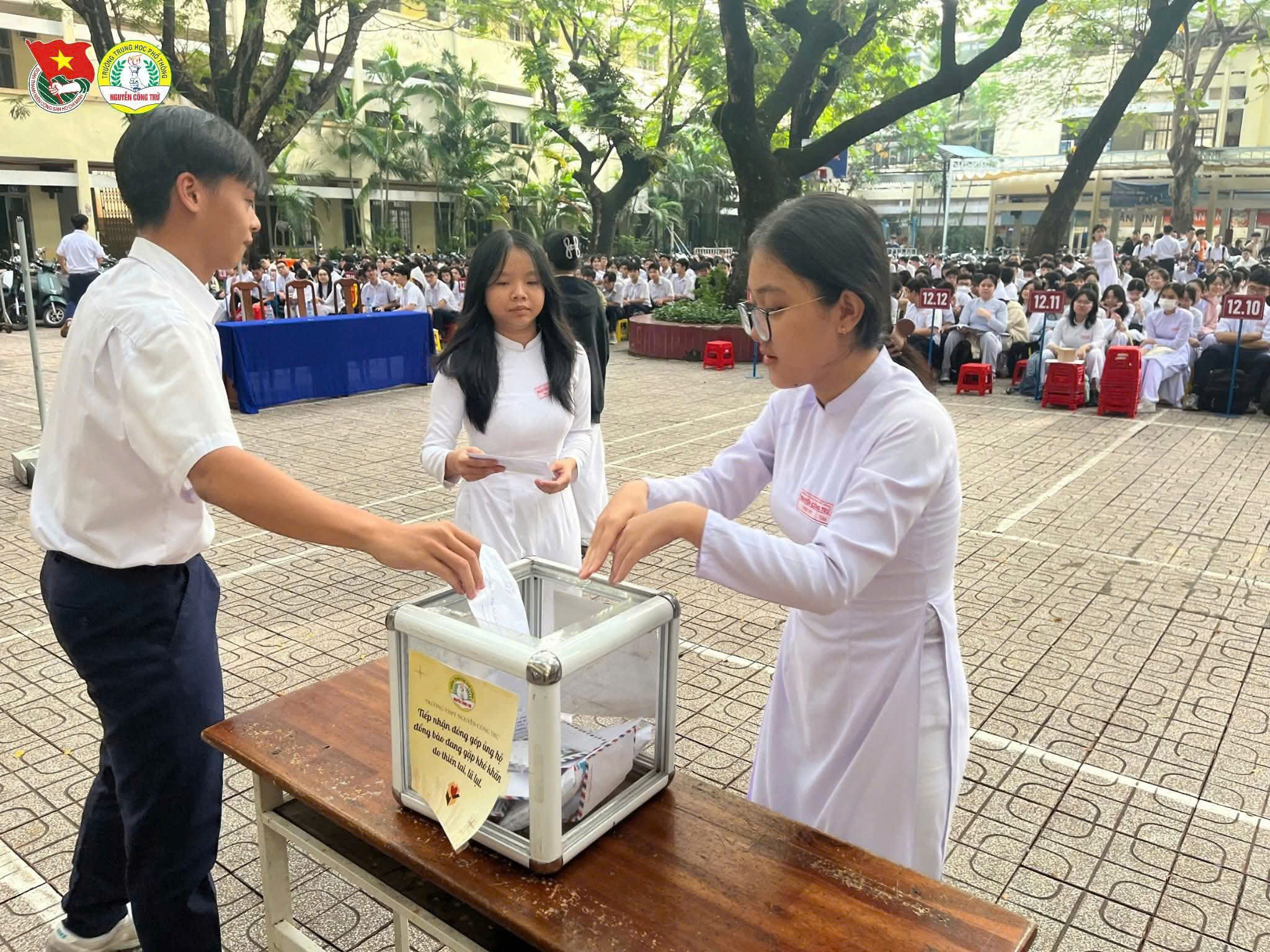 Học sinh Trường THPT Nguyễn Công Trứ (phường Thông Tây Hội, TPHCM) quyên góp, ngày 24-11