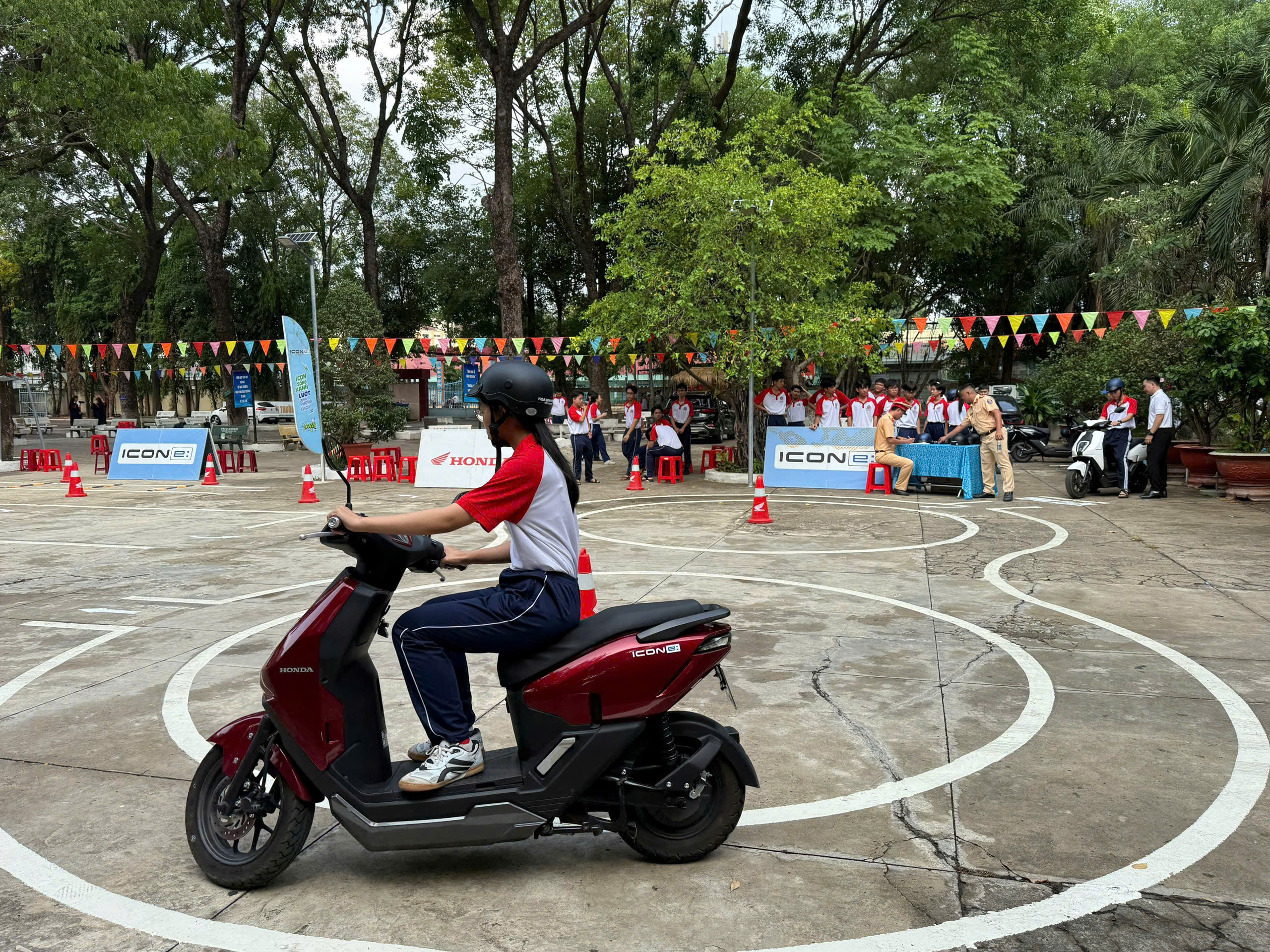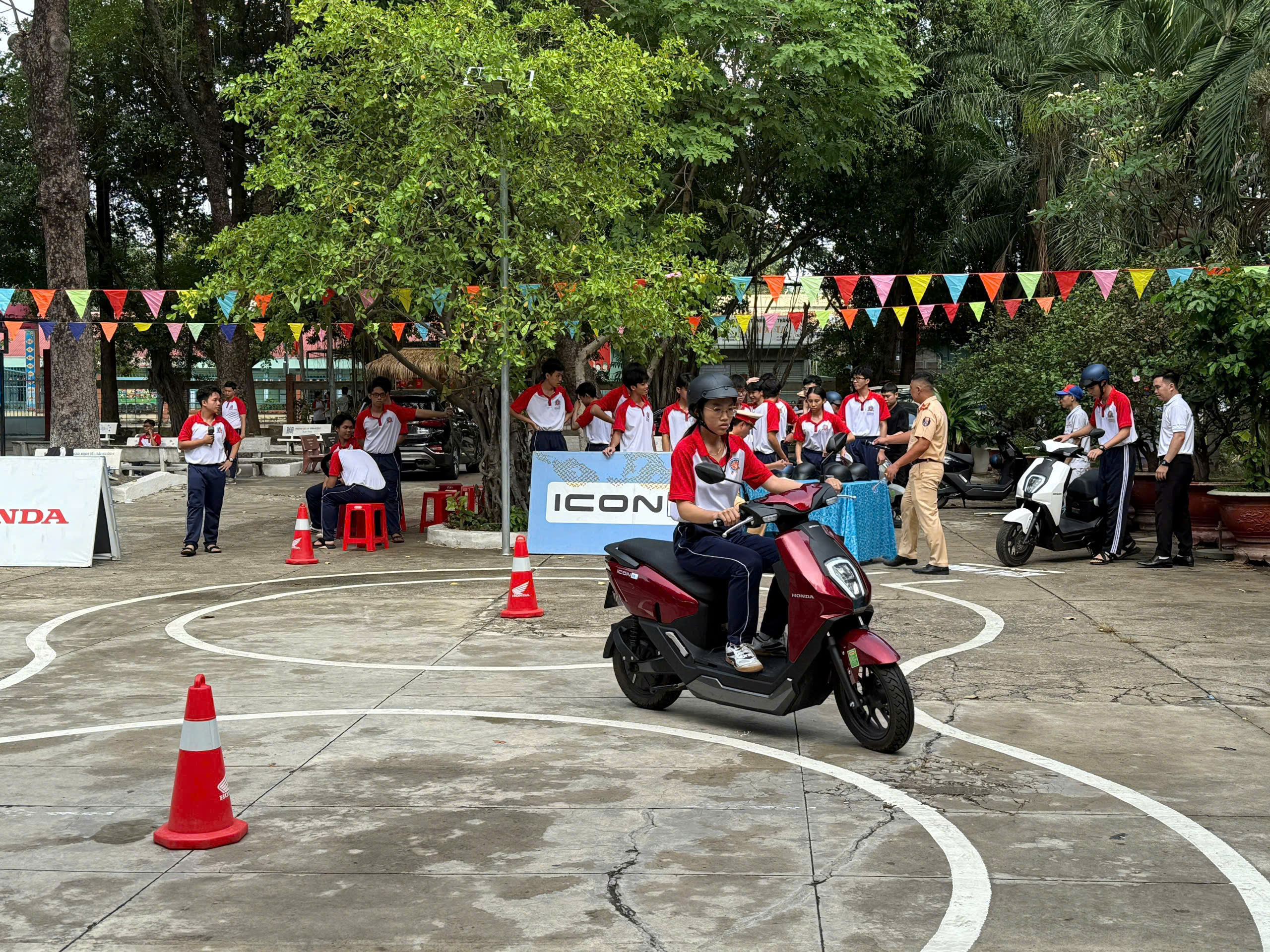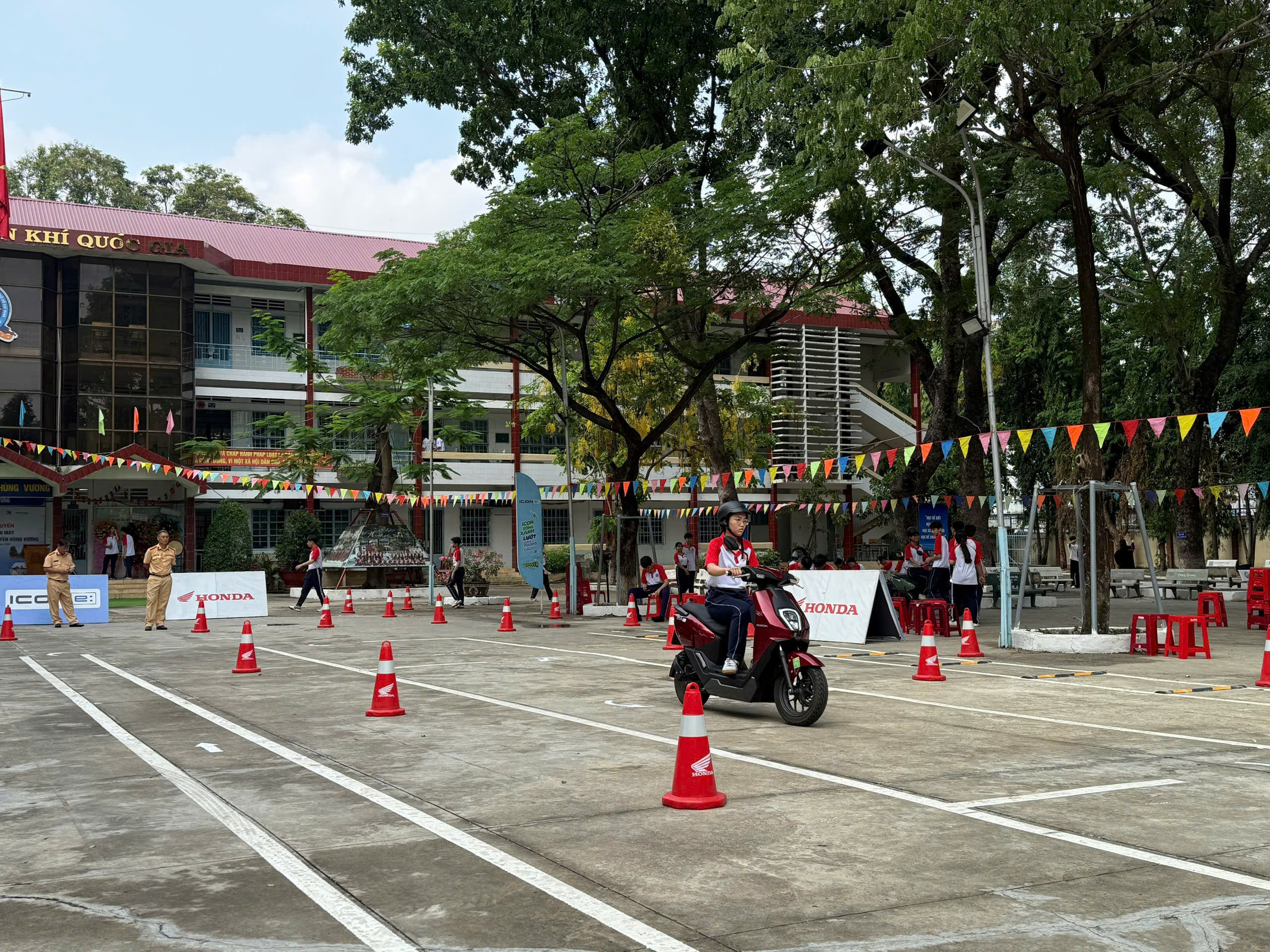 Bên cạnh đó, chương trình còn hướng dẫn cụ thể tư thế ngồi lái xe đúng cách, kỹ năng điều khiển phương tiện an toàn, đồng thời tổ chức thực hành chạy sa hình (phần thực hành thi sát hạch lái xe) theo đúng quy định, giúp học sinh được trải nghiệm kỹ năng lái xe thực tế và nâng cao sự tự tin khi tham gia giao thông.