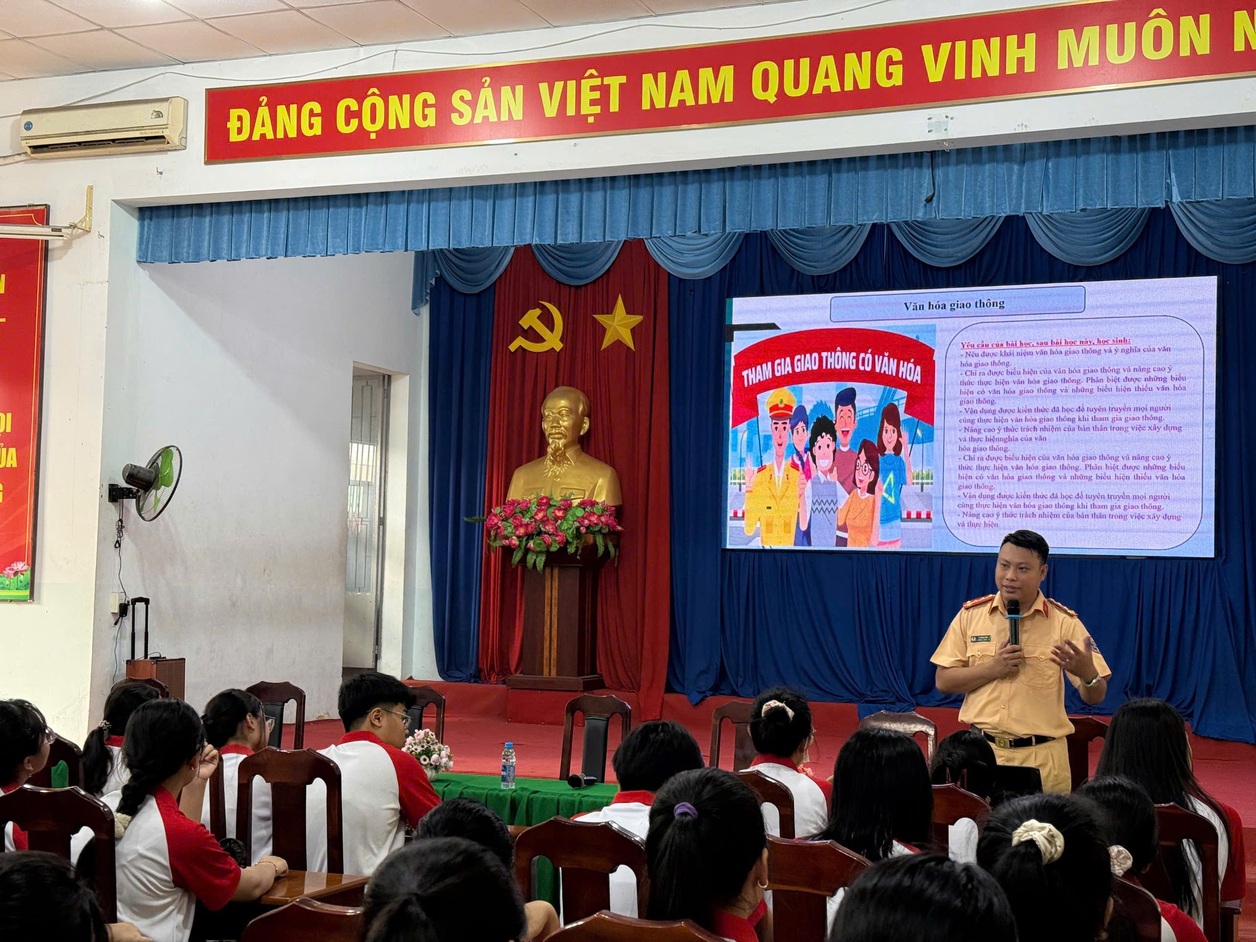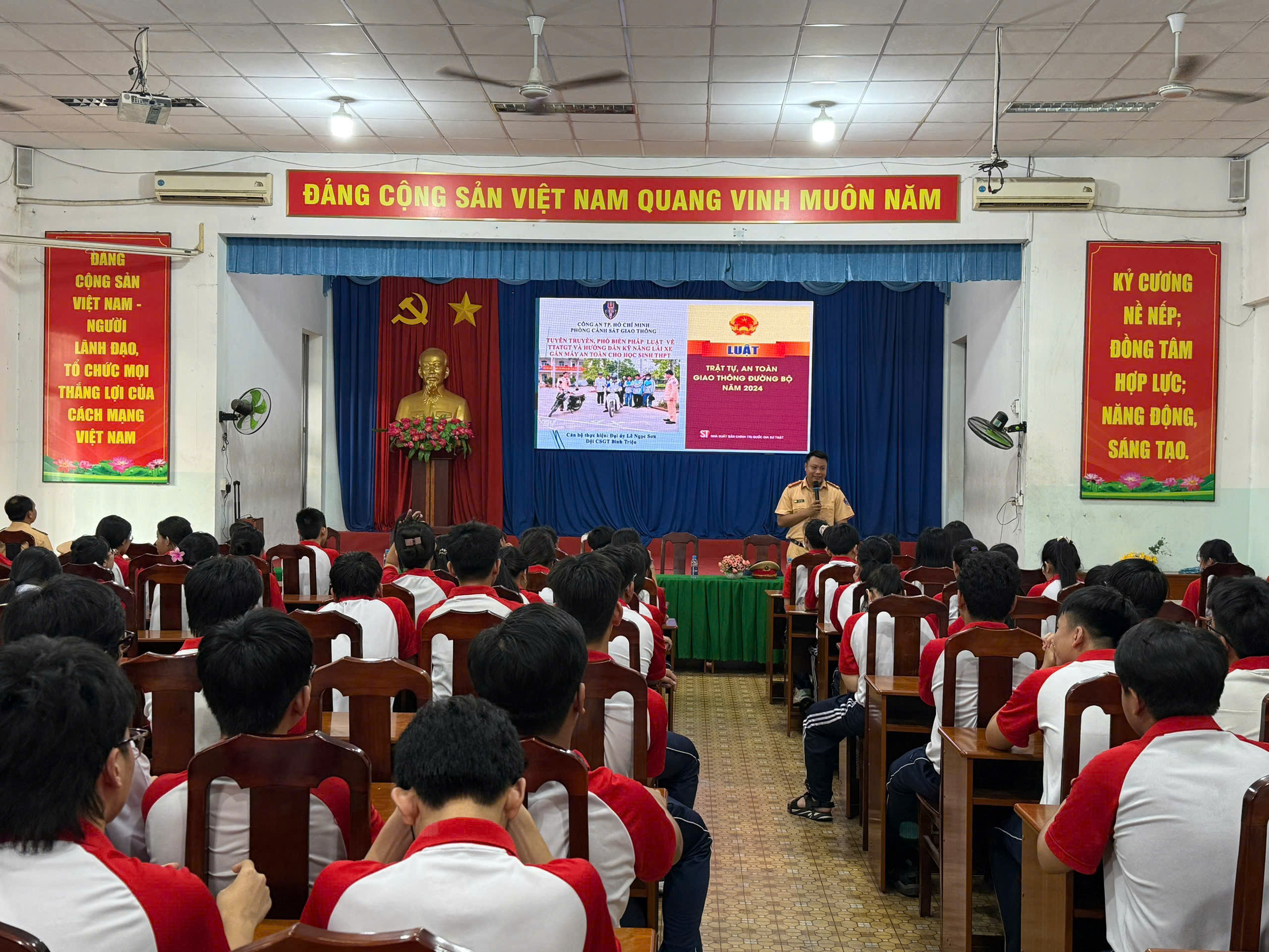 Tại buổi tuyên truyền, các báo cáo viên của lực lượng Công an đã được trang bị những kiến thức hữu ích và cần thiết cho các em học sinh và giáo viên khi tham gia giao thông như: Quy định về văn hóa giao thông, nâng cao ý thức chấp hành pháp luật; nhận biết các tình huống nguy hiểm thường gặp trên đường và kỹ năng xử lý an toàn; tìm hiểu cấu tạo cơ bản của xe gắn máy, cách kiểm tra phương tiện trước khi lưu thông nhằm hạn chế rủi ro...