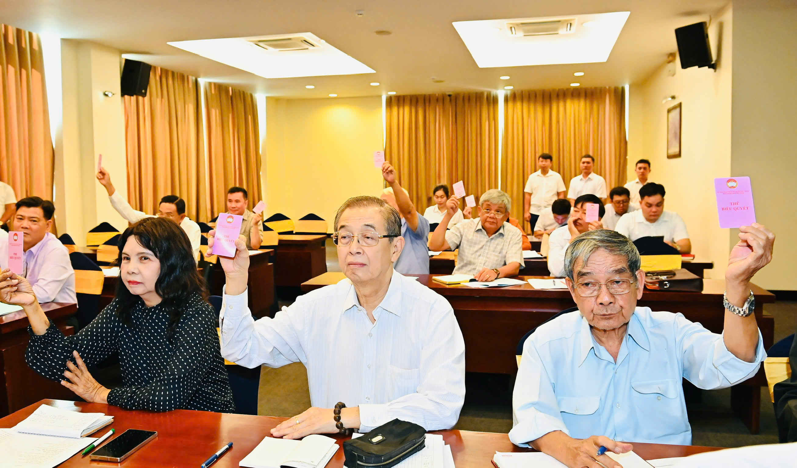 Đại biểu biểu quyết tại hội nghị. Ảnh: VIỆT DŨNG