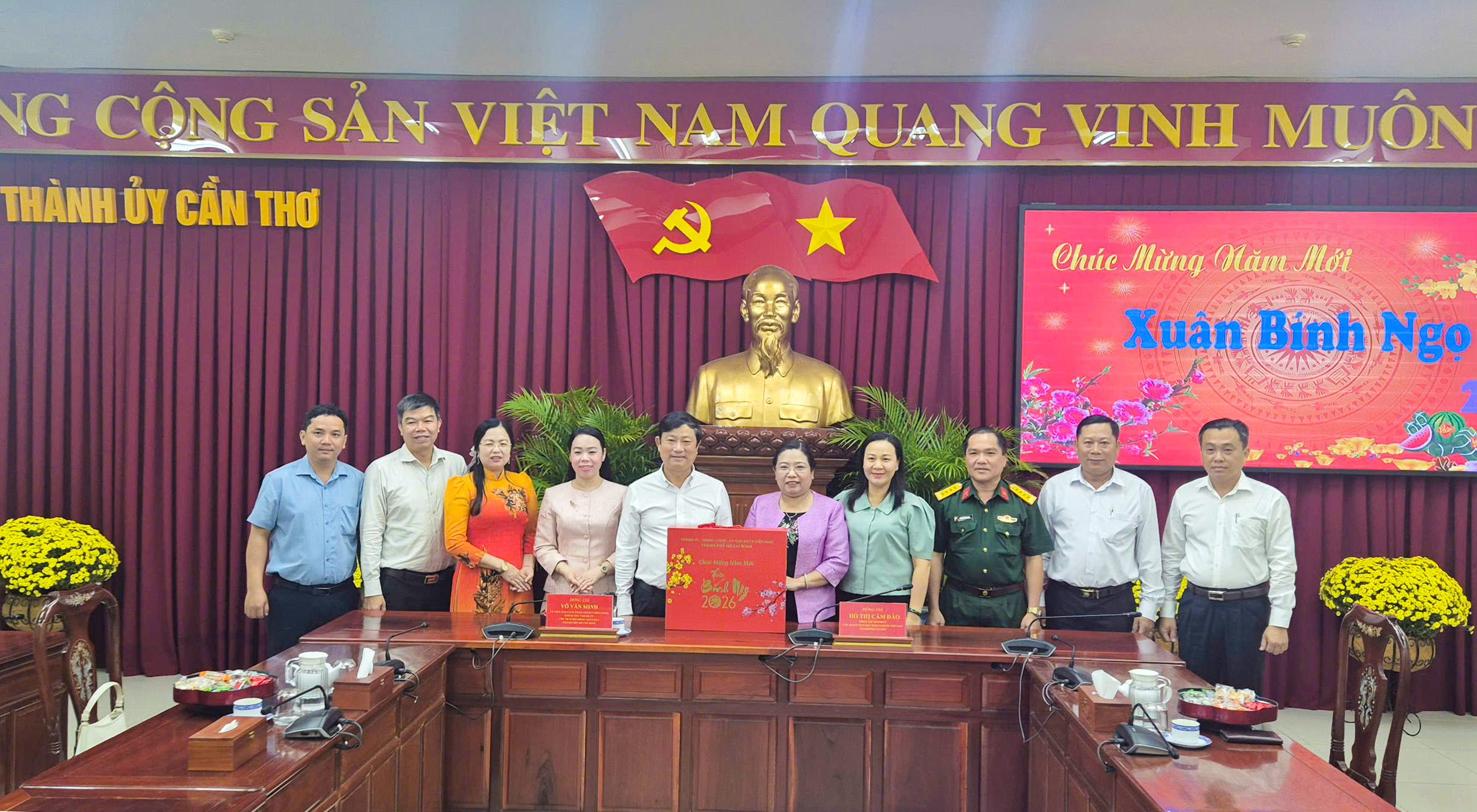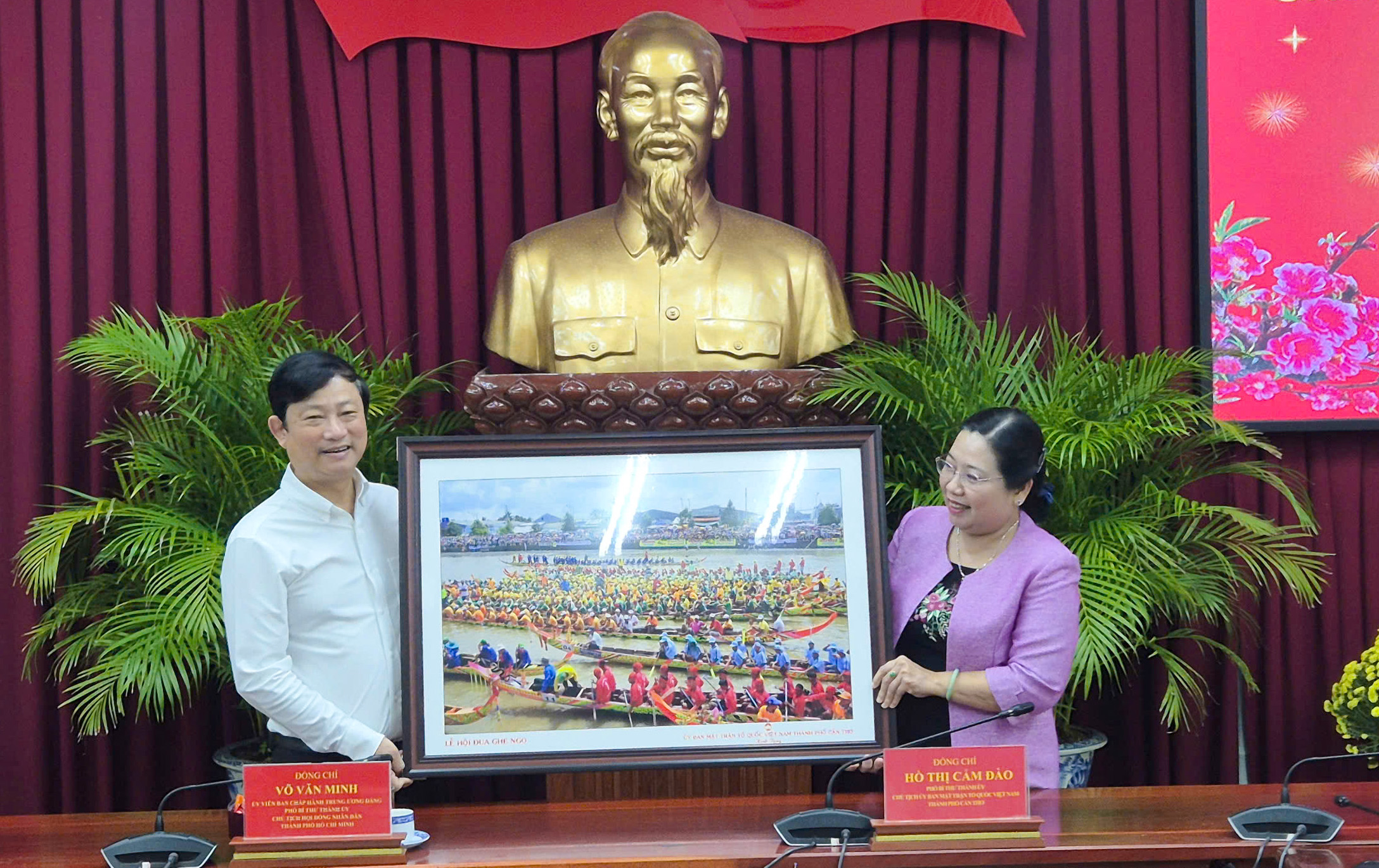 Trong không khí ấm áp, thân tình, đồng chí Võ Văn Minh thay mặt lãnh đạo TPHCM gửi lời chúc mừng năm mới an khang, thịnh vượng đến lãnh đạo Thành ủy, HĐND, UBND, Ủy ban MTTQ Việt Nam TP Cần Thơ.