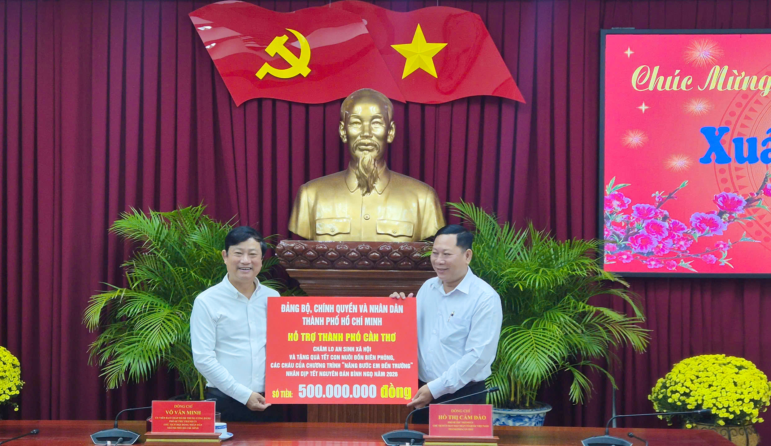 Đồng chí Võ Văn Minh trao bảng tượng trưng 500 triệu đồng thực hiện an sinh xã hội tại Cần Thơ