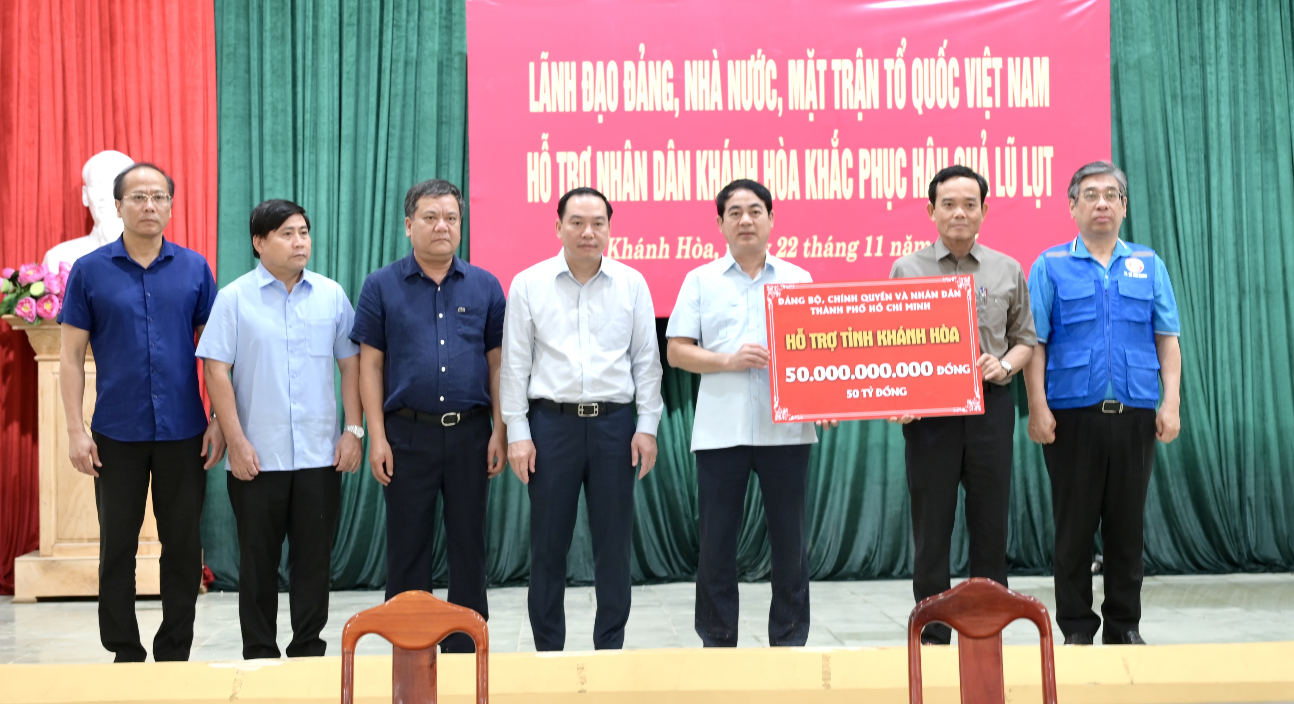 Trước tình hình cấp bách đó, Bộ Chính trị, Ban Bí thư đã giao TPHCM trực tiếp hỗ trợ đồng bào bị ảnh hưởng thiên tai tại tỉnh Khánh Hòa. Trong ngày 22-11, tại tỉnh Khánh Hòa, Đảng bộ, chính quyền và nhân dân TPHCM đã trao 50 tỷ đồng hỗ trợ đến tỉnh này.