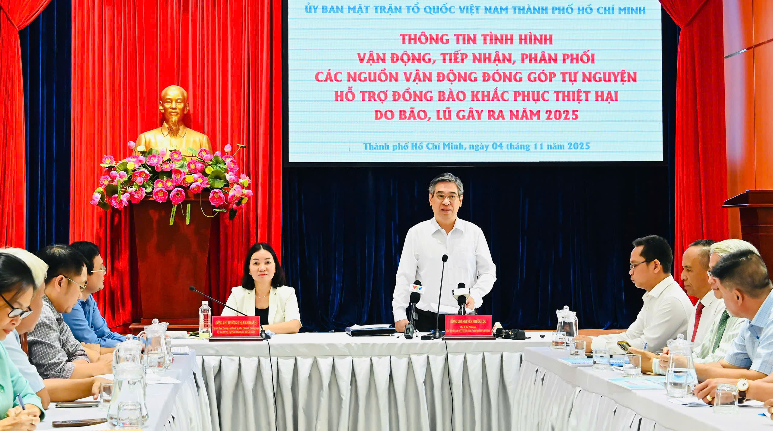 Ngày 4-11, Ủy ban MTTQ Việt Nam TPHCM tổ chức thông tin về tình hình vận động, tiếp nhận, phân phối các nguồn đóng góp tự nguyện hỗ trợ đồng bào khắc phục thiệt hại do bão, lũ gây ra năm 2025.