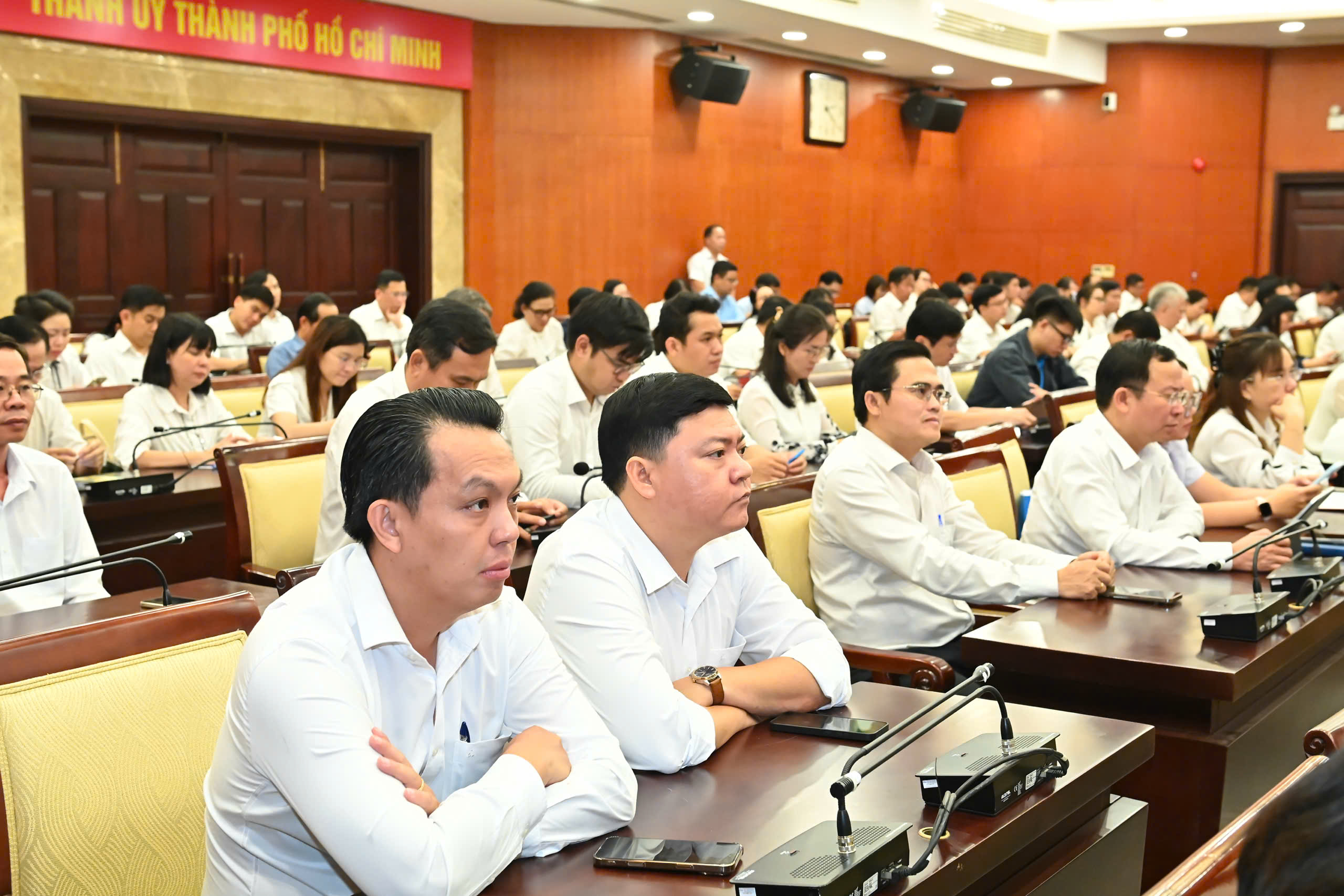 Ngoài ra, các đồng chí là cán bộ, đảng viên đang tham dự tại các điểm cầu của Đảng ủy cấp trên trực tiếp cơ sở trực thuộc Thành ủy; các sở, ban, ngành thành phố; MTTQ và các tổ chức chính trị - xã hội thành phố, các xã, phường, đặc khu.