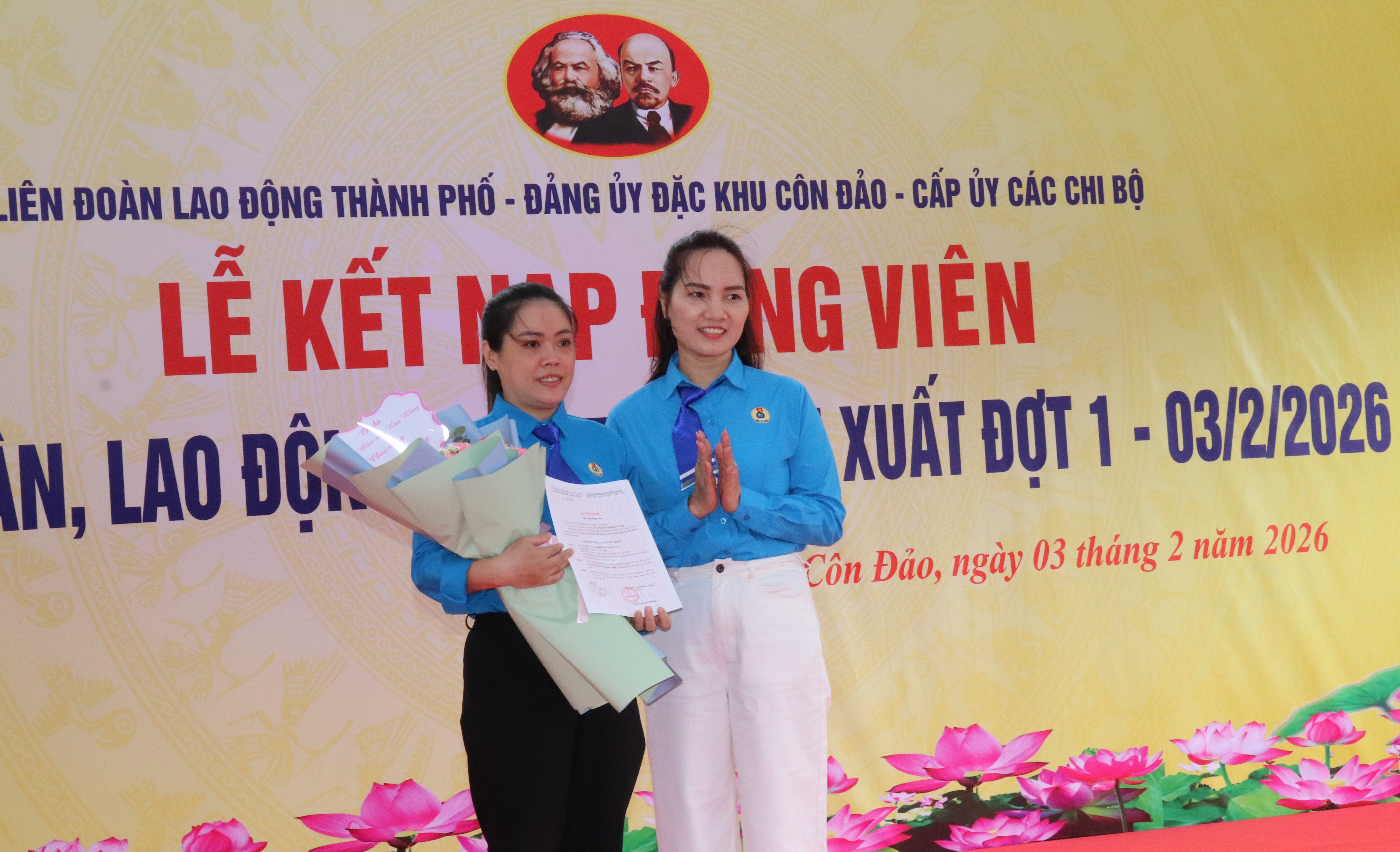 Chúc mừng các công nhân, lao động ưu tú vinh dự đứng vào hàng ngũ của Đảng, đồng chí Phan Trọng Hiền nhấn mạnh, đây không chỉ là sự kiện chính trị có ý nghĩa sâu sắc mà còn là dịp giáo dục truyền thống, thể hiện sinh động sự gắn kết giữa Đảng ủy Đặc khu Côn Đảo và LĐLĐ TPHCM trong công tác xây dựng Đảng đối với công nhân, lao động.