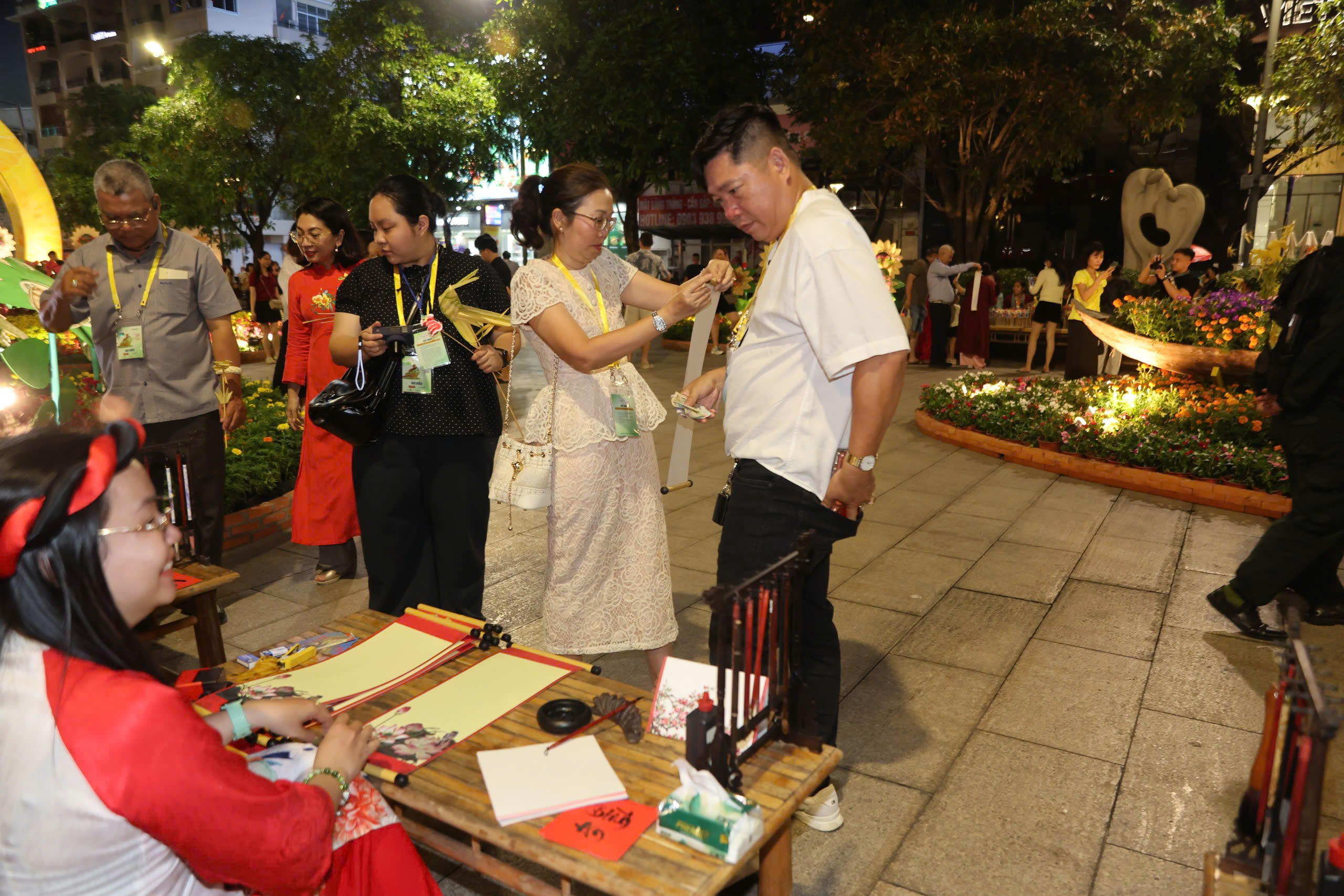 Người dân xin chữ tại Đường hoa Nguyễn Huệ Tết Bính Ngọ 2026. Ảnh: DŨNG PHƯƠNG