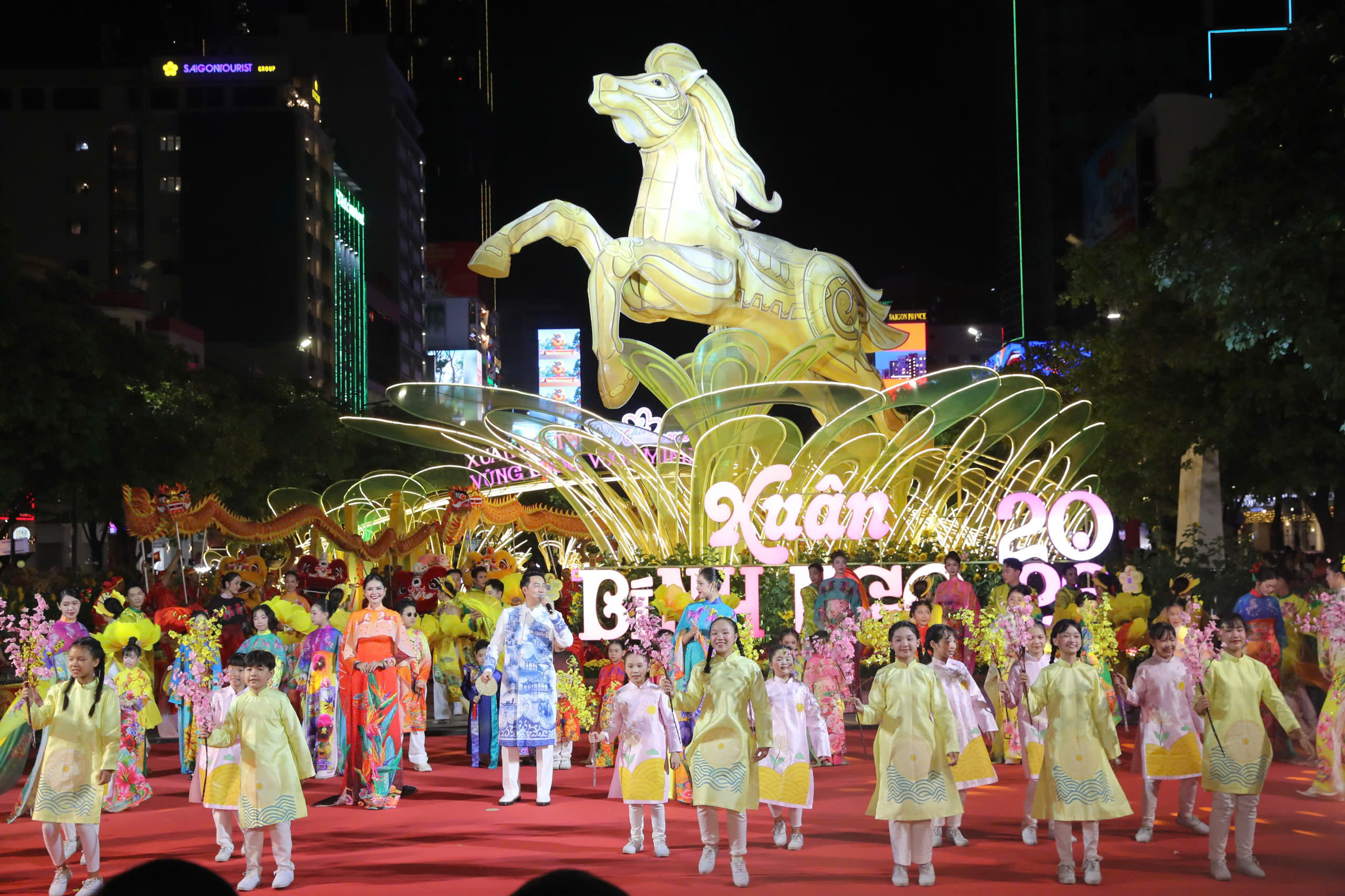 Năm nay, Đường hoa Nguyễn Huệ Tết Bính Ngọ 2026 mang chủ đề “Xuân hội tụ - Vững bước vươn mình”, mở rộng không gian tổ chức. Lần đầu tiên, chương trình được triển khai đồng bộ tại ba địa điểm: Đường đi bộ Nguyễn Huệ (phường Sài Gòn), phường Thủ Dầu Một và phường Vũng Tàu, cùng hướng đến chủ đề chung, thể hiện tinh thần đoàn kết, hội tụ và phát triển của Thành phố.