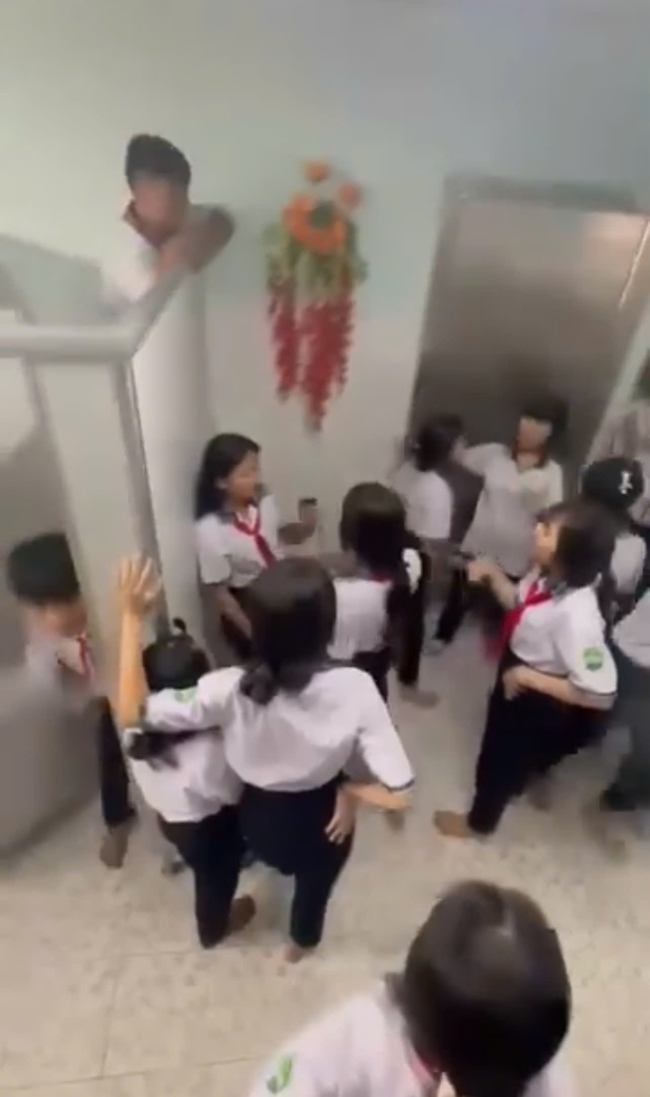 Hành vi đánh hội đồng chỉ dừng lại khi có tiếng quát kèm sự can thiệp của một nam nhân viên của trường.
