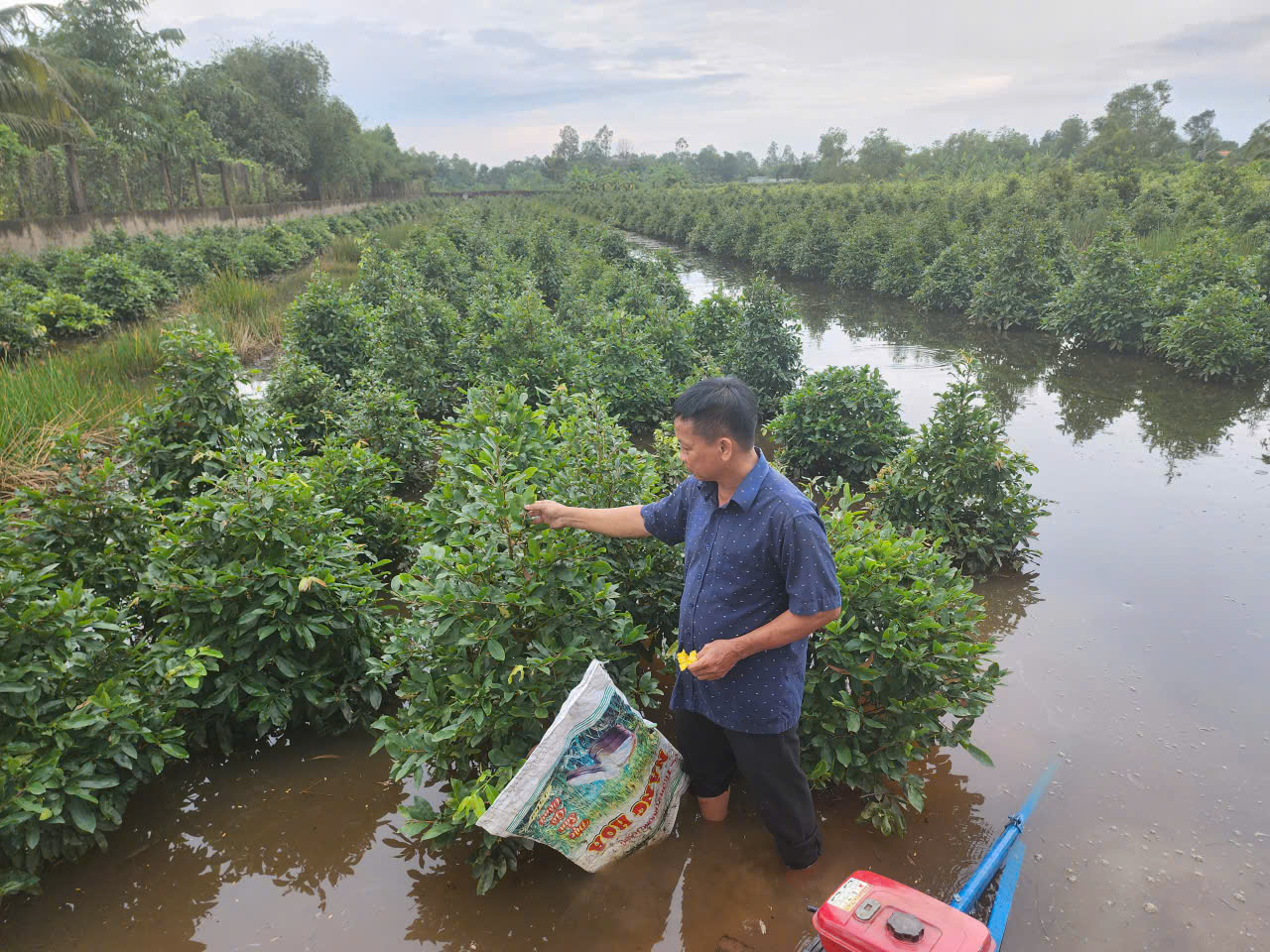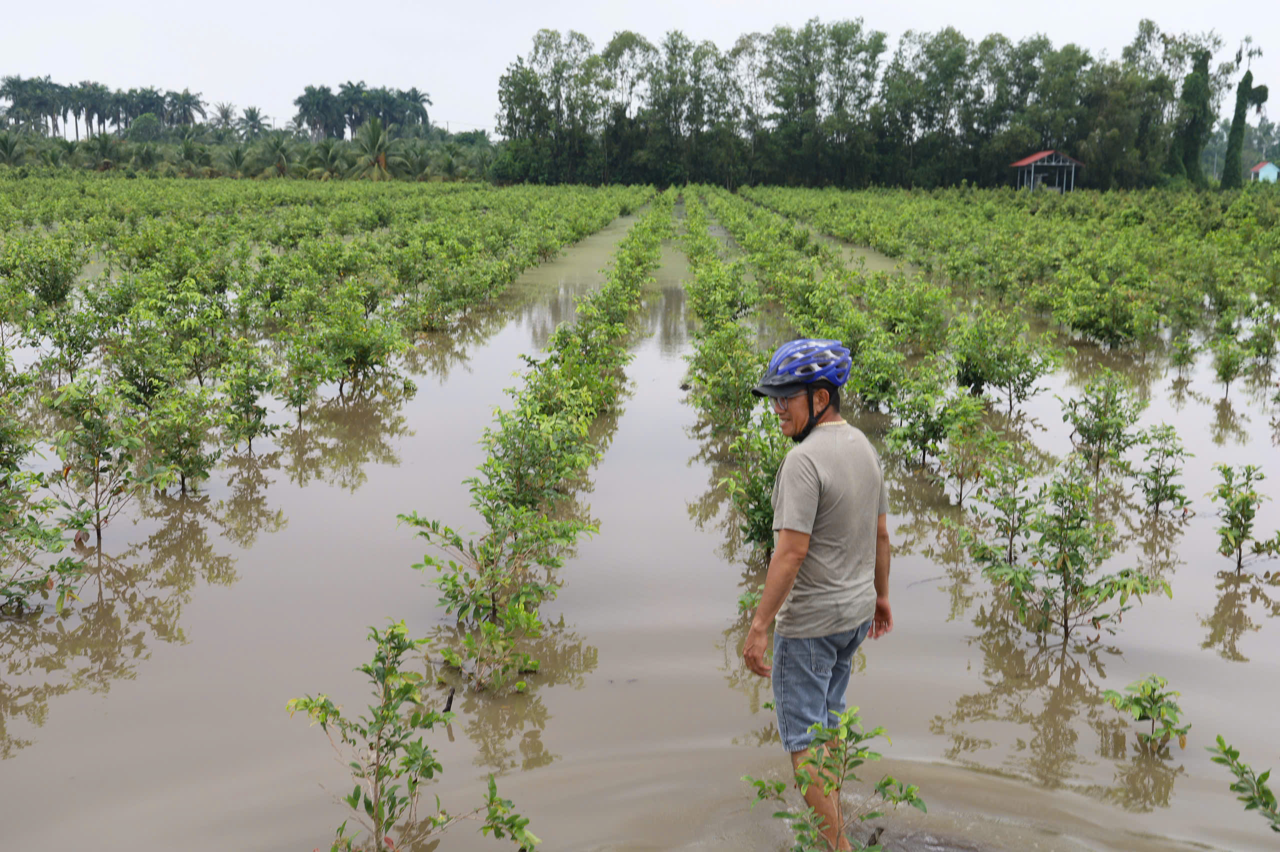 Các ấp 1, 2, 3 và 4 là những khu vực chịu thiệt hại nặng nề nhất, với khoảng 900ha cây trồng, vật nuôi bị ảnh hưởng. Trong đó, hơn 500ha mai vàng – cây trồng chủ lực của địa phương – bị ngập sâu, nguy cơ bung nụ sớm, thối rễ, ảnh hưởng nghiêm trọng đến thị trường hoa Tết.