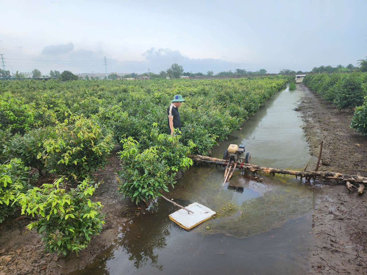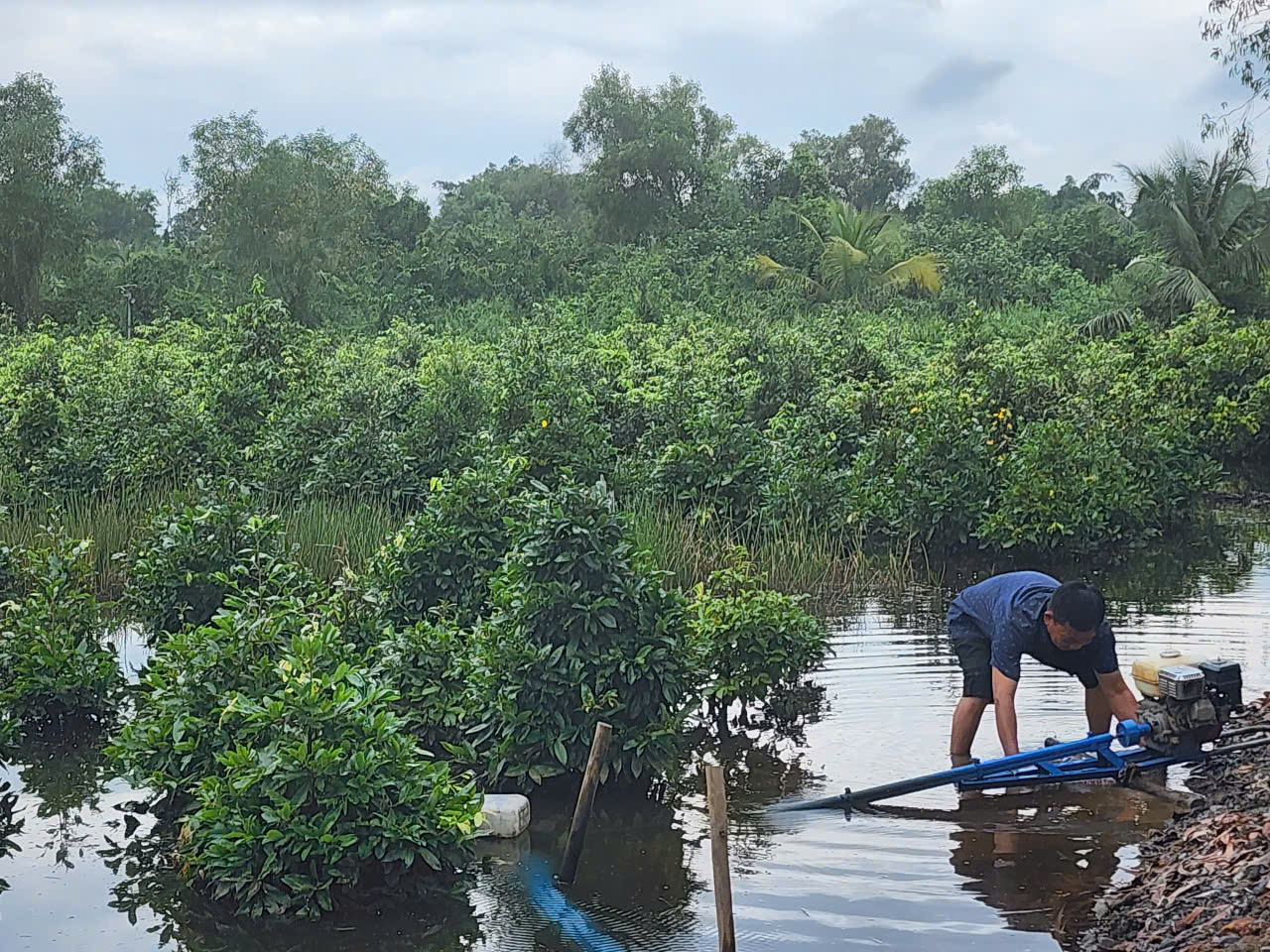 Dù đã huy động máy bơm hút nước suốt ba ngày qua, nhiều chủ vườn vẫn lo ngại thiệt hại tiếp tục gia tăng nếu nước không rút kịp trước đợt triều cường tiếp theo, dự kiến vào ngày 17-9 âm lịch.