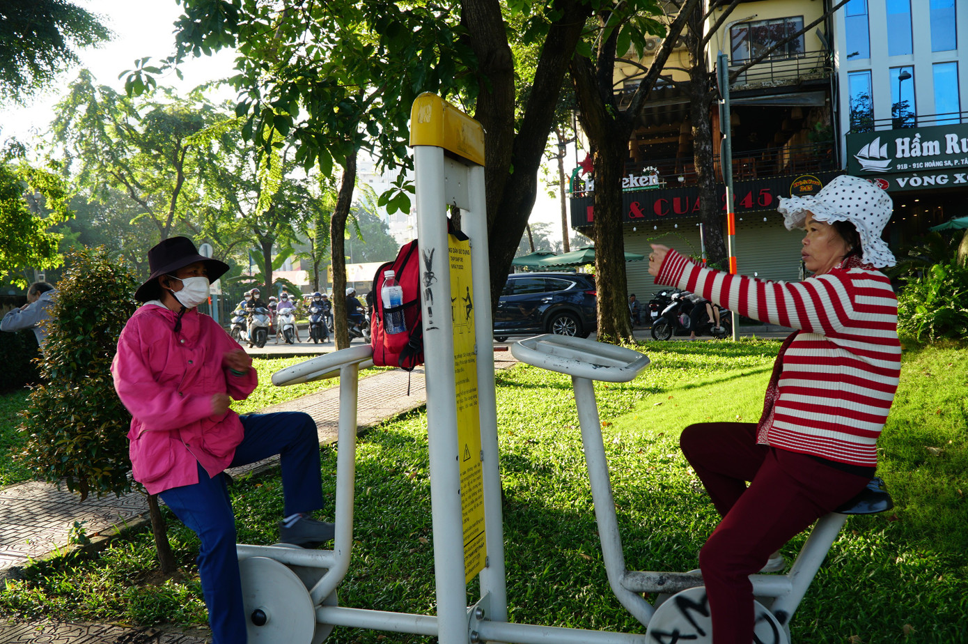 Không chỉ người đi làm sớm, nhiều người tập thể dục buổi sáng cũng phải mặc áo ấm, khác hẳn hình ảnh áo thun, quần short quen thuộc của những ngày thường. Một số người còn cho biết phải khởi động kỹ hơn để tránh bị lạnh, đặc biệt là khi trời có gió nhẹ.
