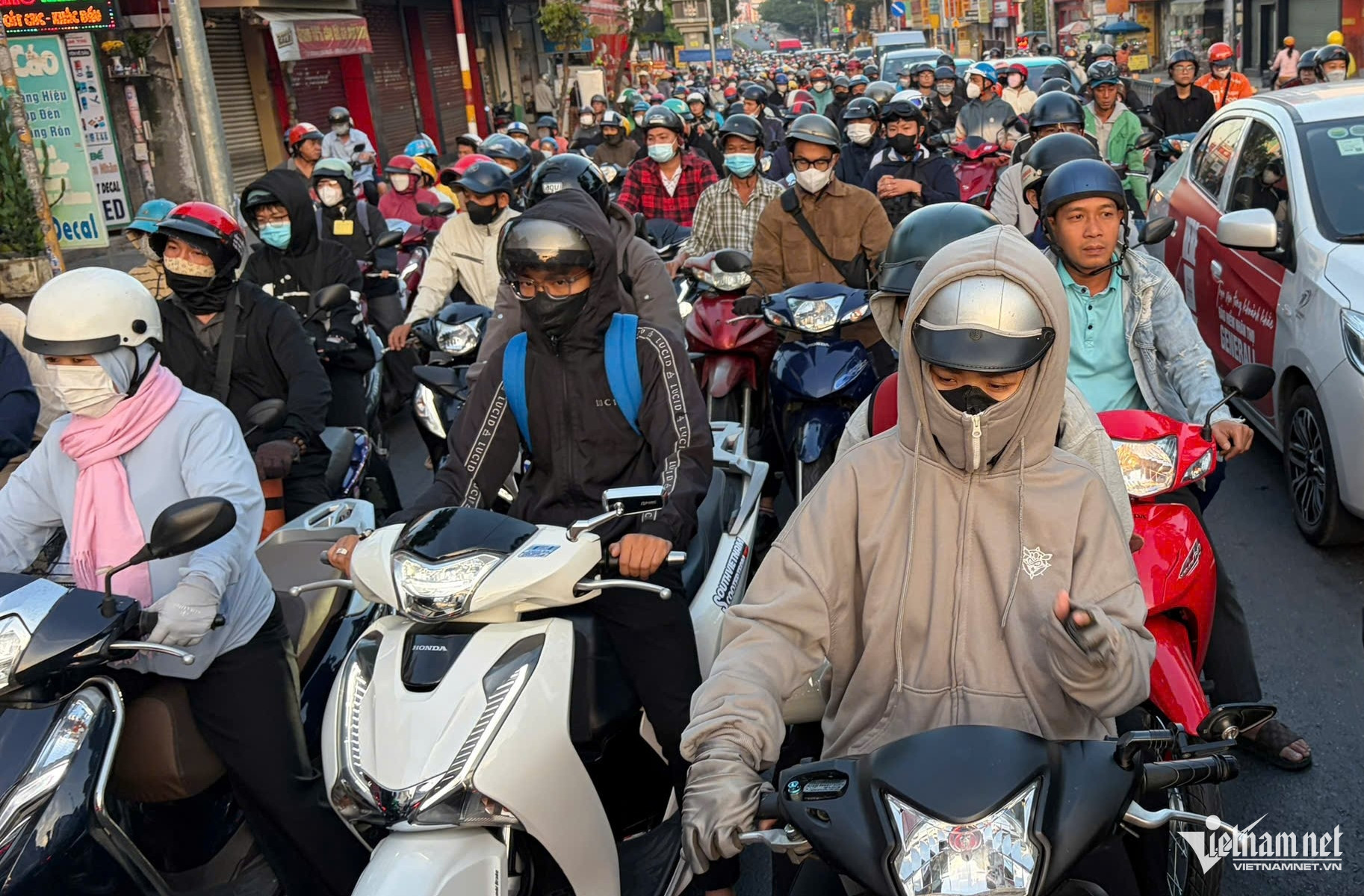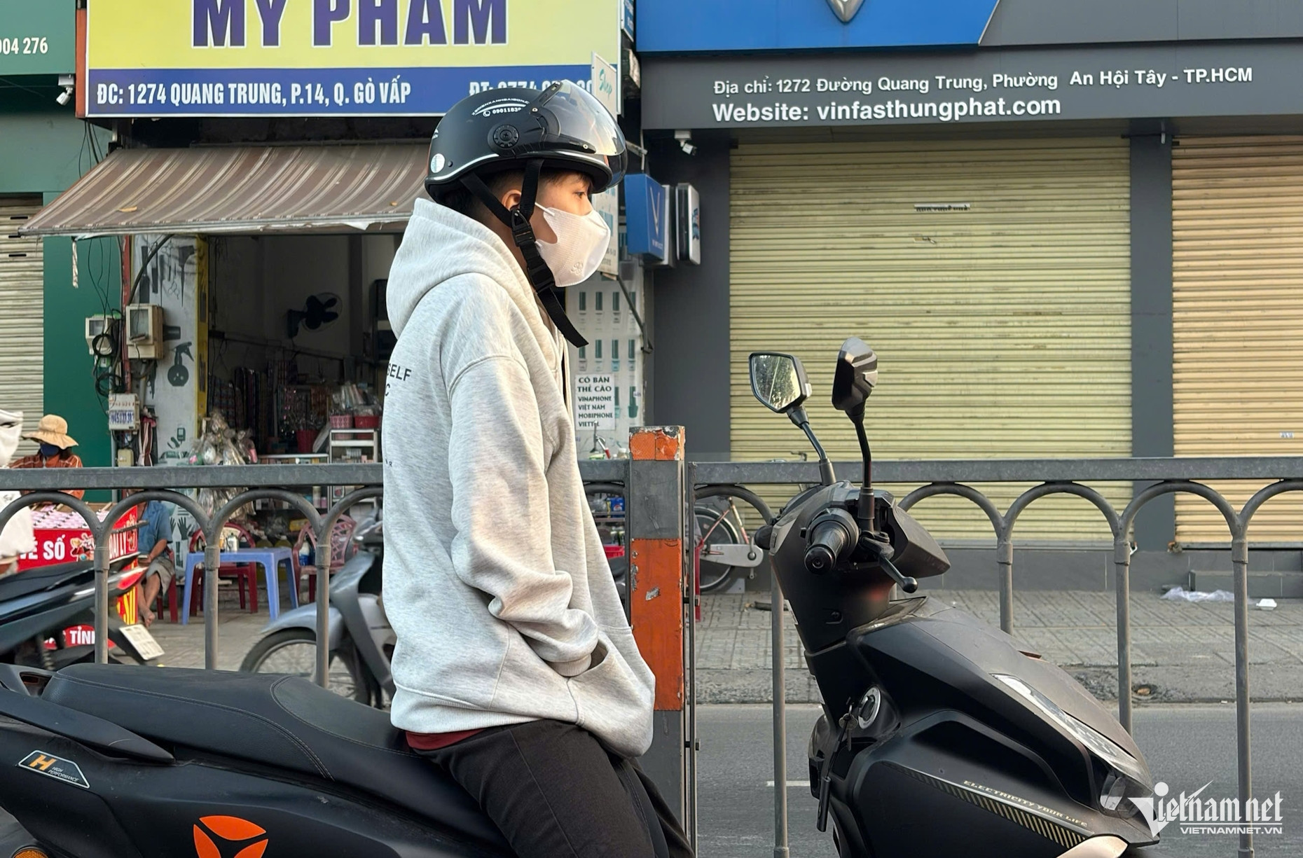 Cái lạnh 17 độ C khiến người dân TPHCM co ro khi ra đường vào sáng sớm.