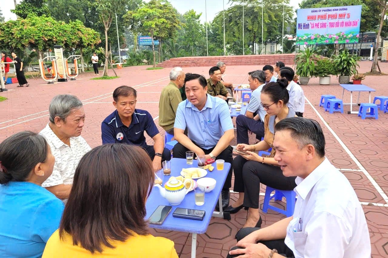 Lãnh đạo phường Bình Dương, TPHCM cà phê sáng với người dân để nghe tâm tư nguyện vọng.