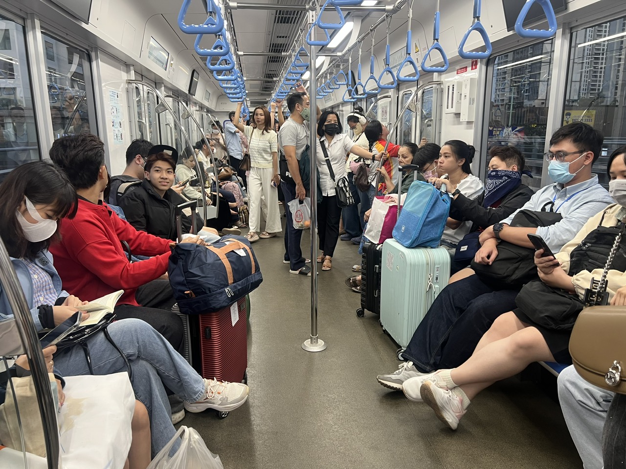 Hành khách đi metro Bến Thành - Suối Tiên. Ảnh: QUỐC HÙNG