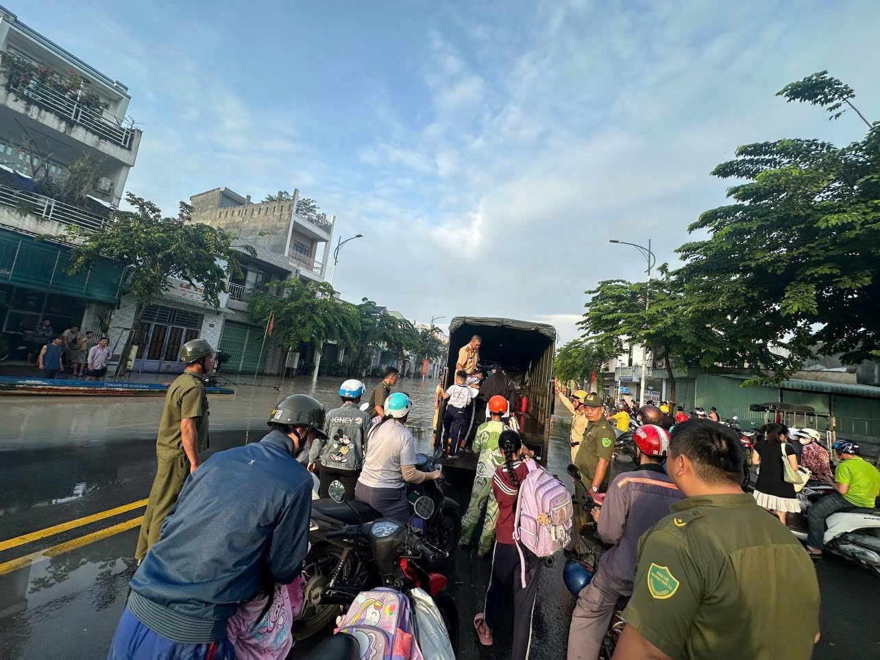 Dưới sự chỉ huy của thiếu tá Nguyễn Văn Hùng – Phó Trạm trưởng, lực lượng CSGT đã tổ chức phân luồng, điều tiết giao thông và dùng ô tô chuyên dụng hỗ trợ chở người dân, học sinh qua đoạn ngập sâu, đảm bảo an toàn tuyệt đối cho người tham gia giao thông.